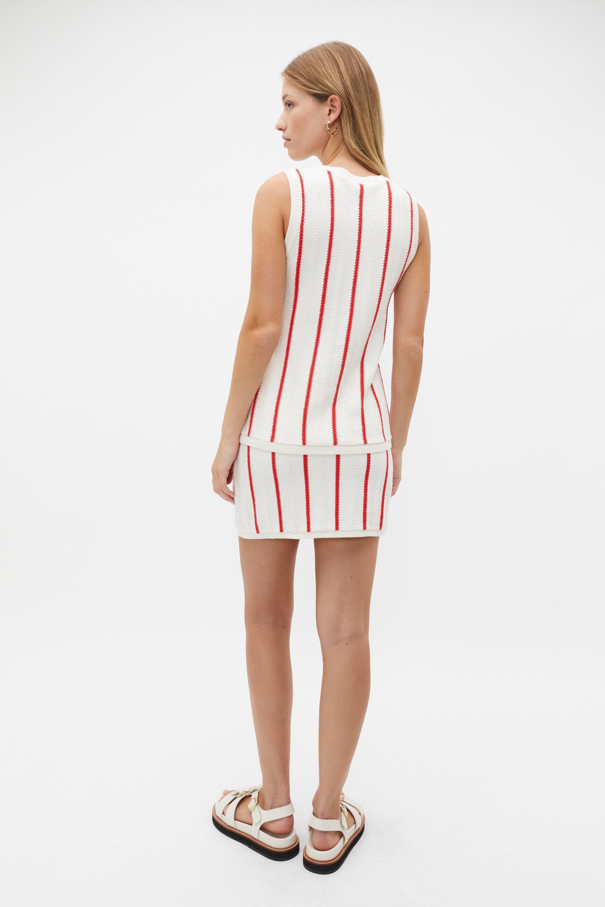 A bold play on a classic style, this vest features a round neck, sleeveless design with ribbed trims and a stripe design. Crafted from premium cotton, it's the ideal piece for your summer styling. By choosing our cotton products you're supporting our investment in Better Cotton's mission. This product was sourced via a system of mass balance and therefore may not contain Better Cotton.