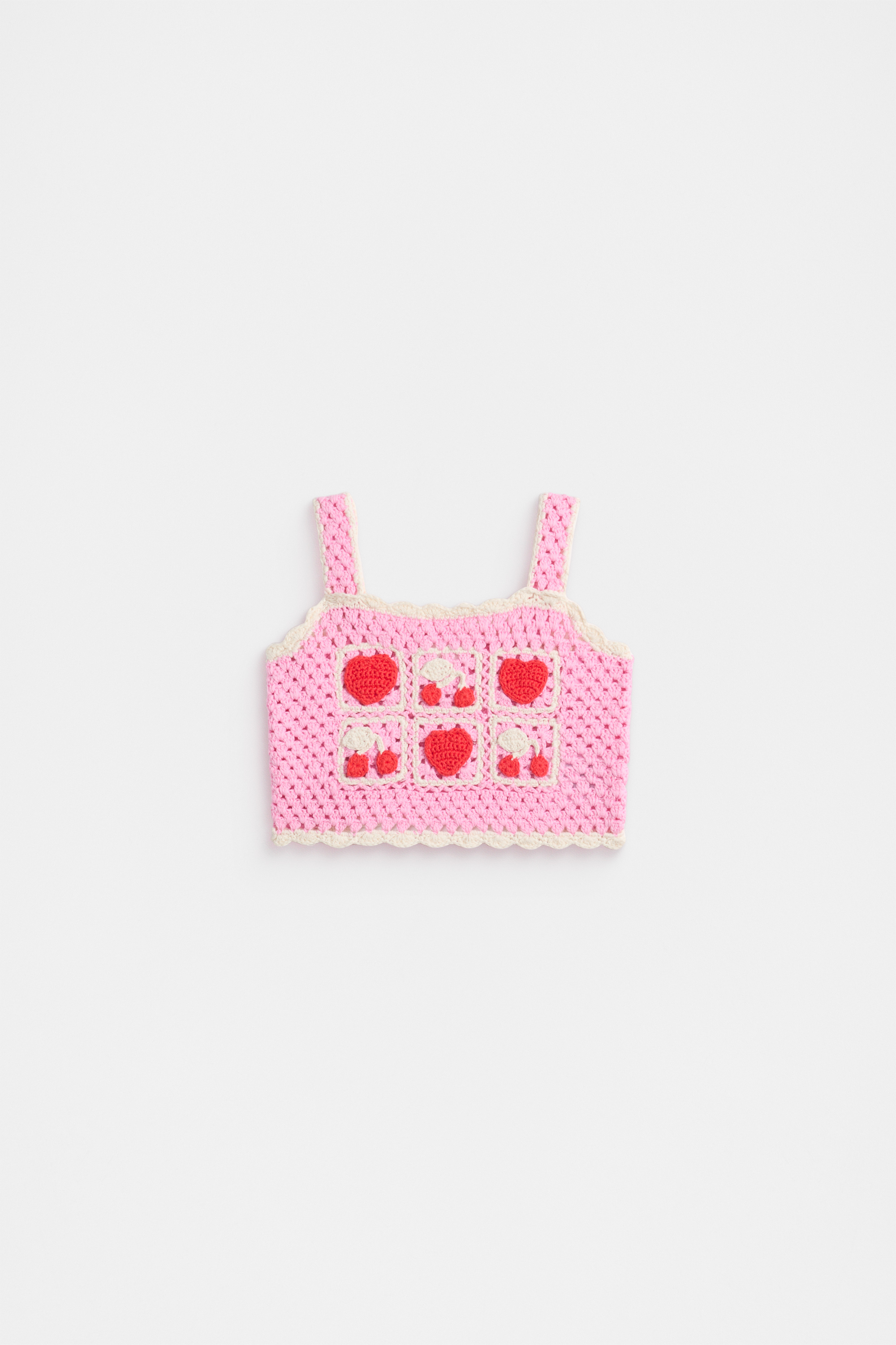 This sweet little statement style is perfect for festive parties and special occasions. Crafted in premium cotton and finished in a crochet knit, it features a straight neckline, straps, ric rac trims, and an adorable design of hearts and cherries. Pair with the matching apparel or accessory styles for a gorgeous head-to-toe look, or for the perfect gift.