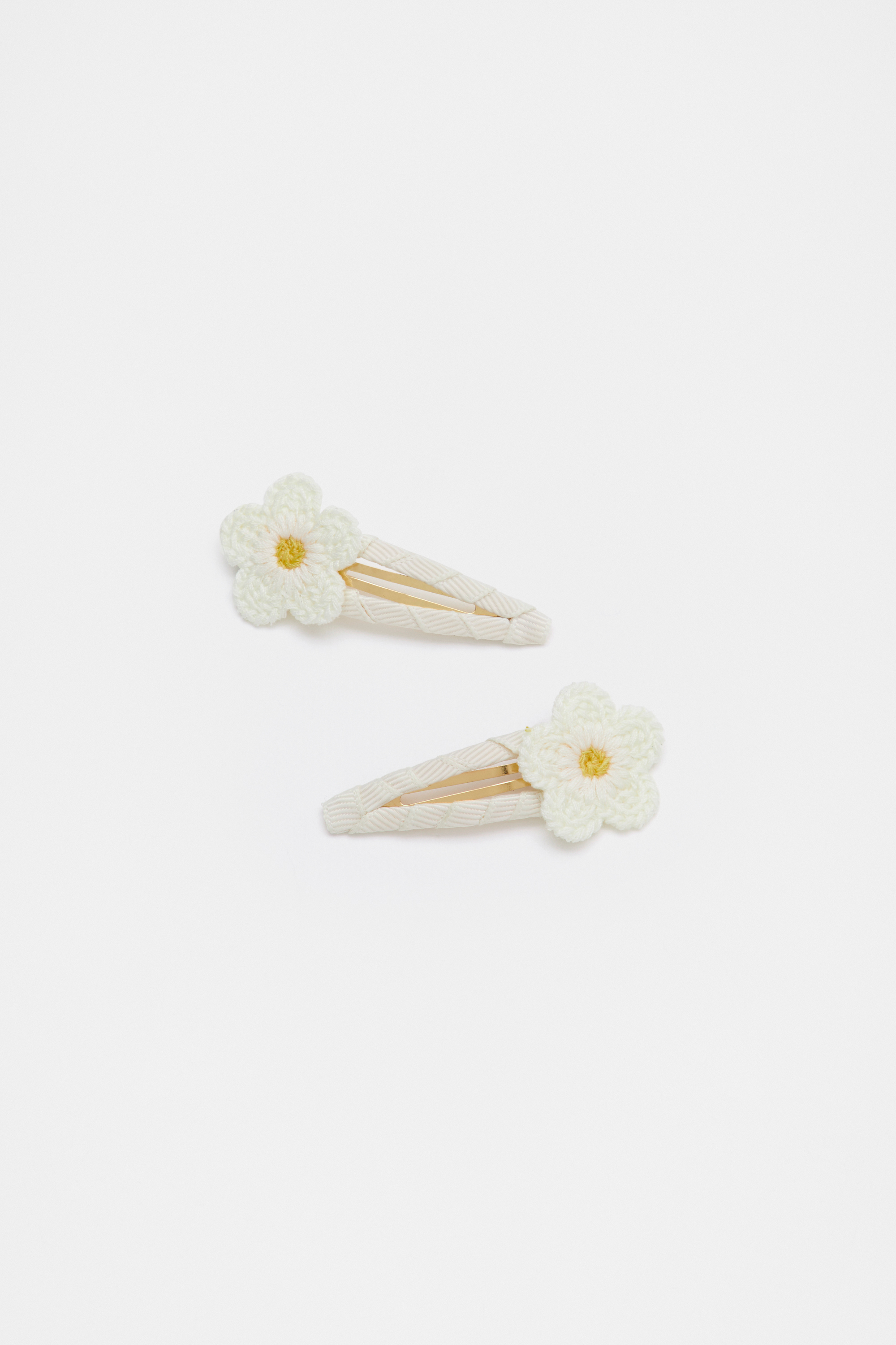 Coming in a set of two, these sweet snaps are wrapped in matching grosgrain ribbon and feature a crotchet daisy design in pink. This product is not a toy and is not suitable for children three years and under.