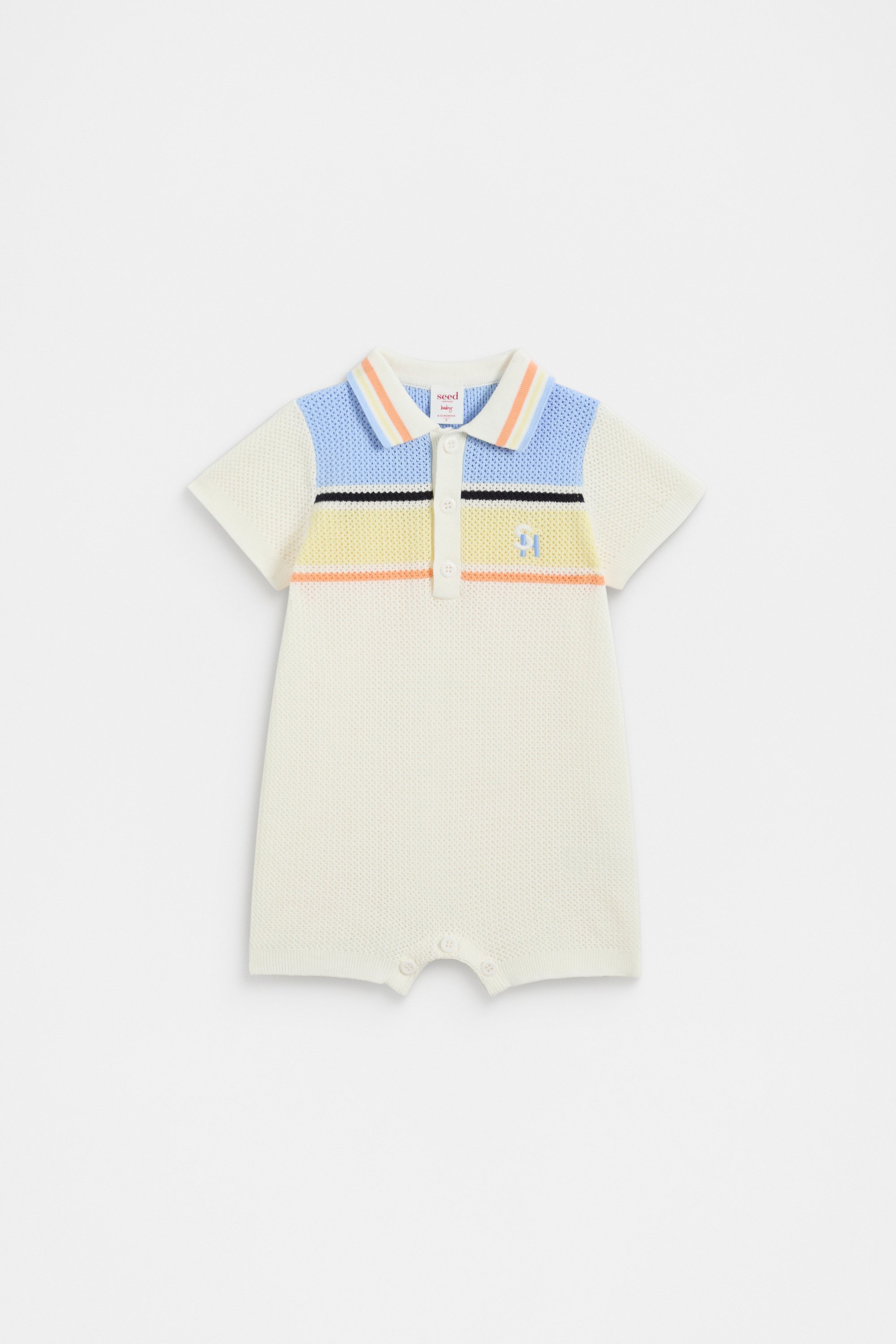 Crochet Polo Romper  Canvas  hi-res Crochet Polo Romper  Canvas  hi-res
