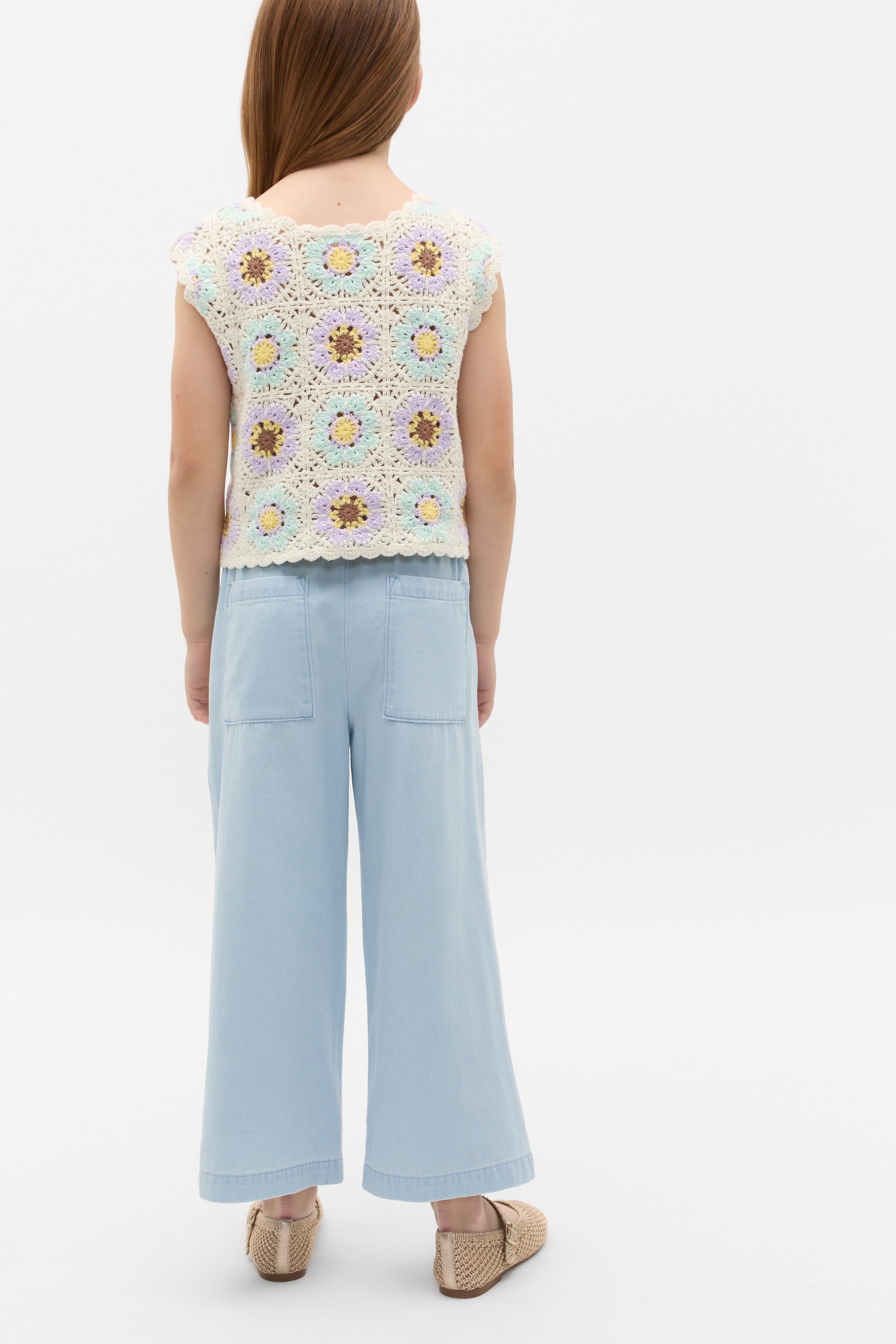 Stylish and sweet, this statement top is finished in a soft crochet knit. Crafted in premium cotton with little stretch, it features a round neck, scallop trim details and a flower design.