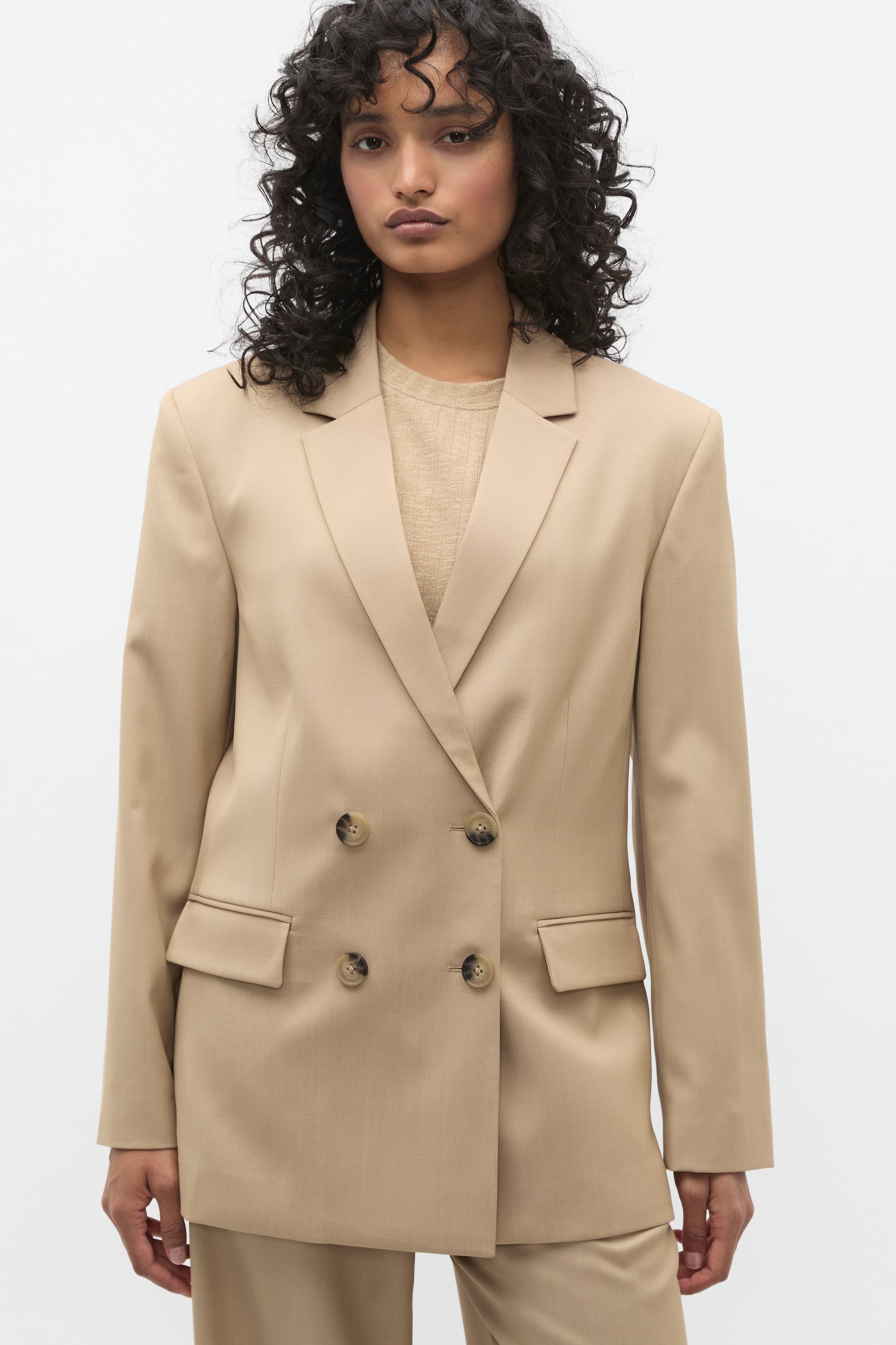 main: 54% polyester 43% wool 3% elastane lining: 100% polyester