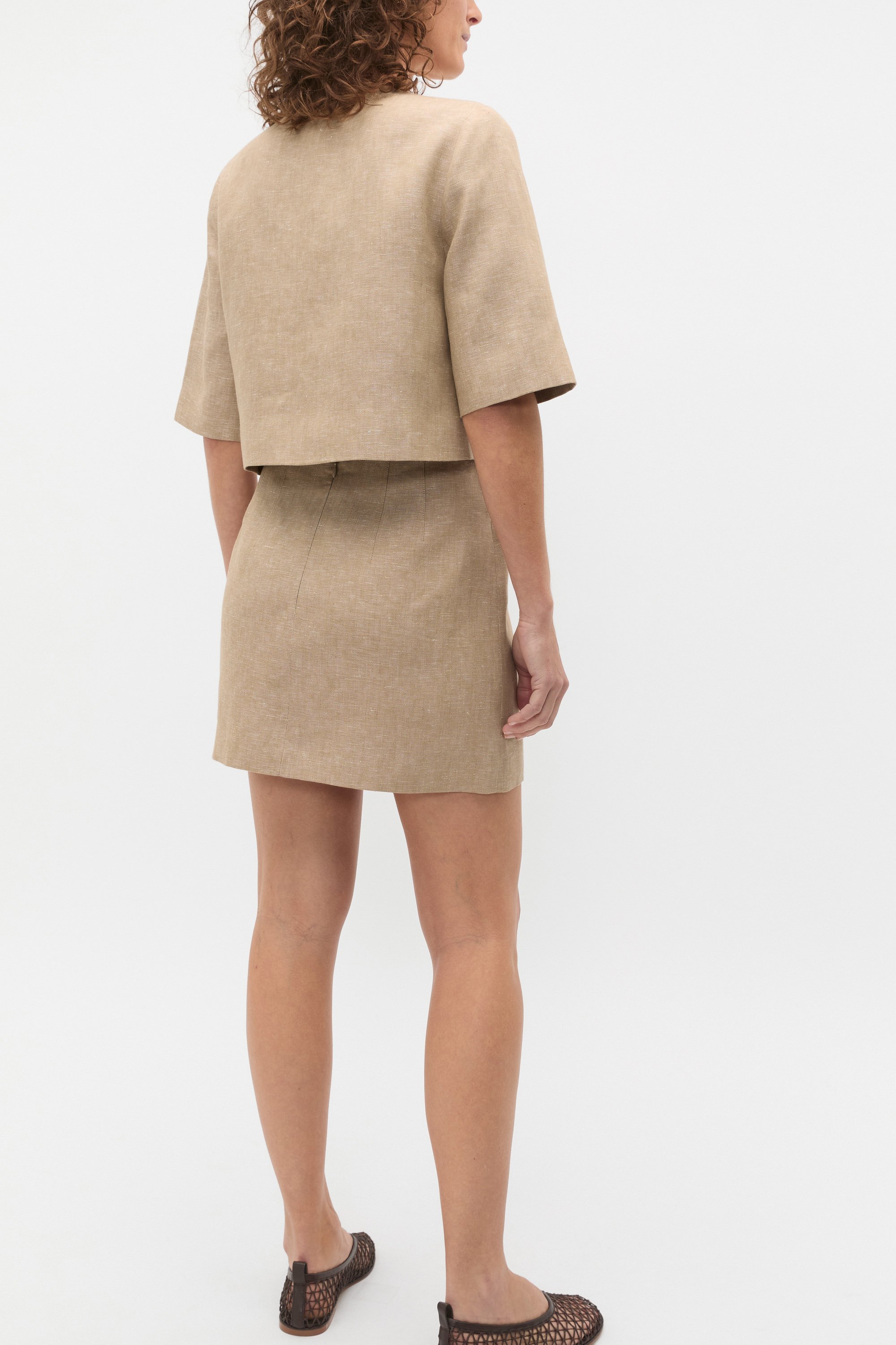 Structured and elevated, this crossdye style is a chic option for your warm-weather getaways. Crafted in premium linen, it features a round neck, half sleeves and a button-through front. It's fully lined for comfort and wearability and with a cropped length, it offers an effortlessly on-trend look.