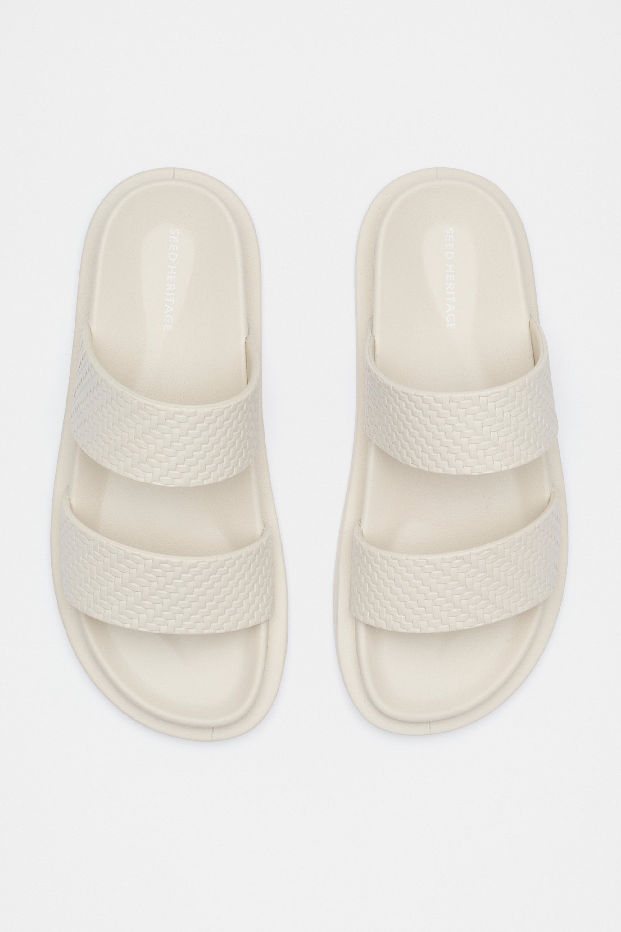 Lightweight and easy to style, these jelly slides are perfect for the warmer weather. They're a slip-on style and feature a double strap design.