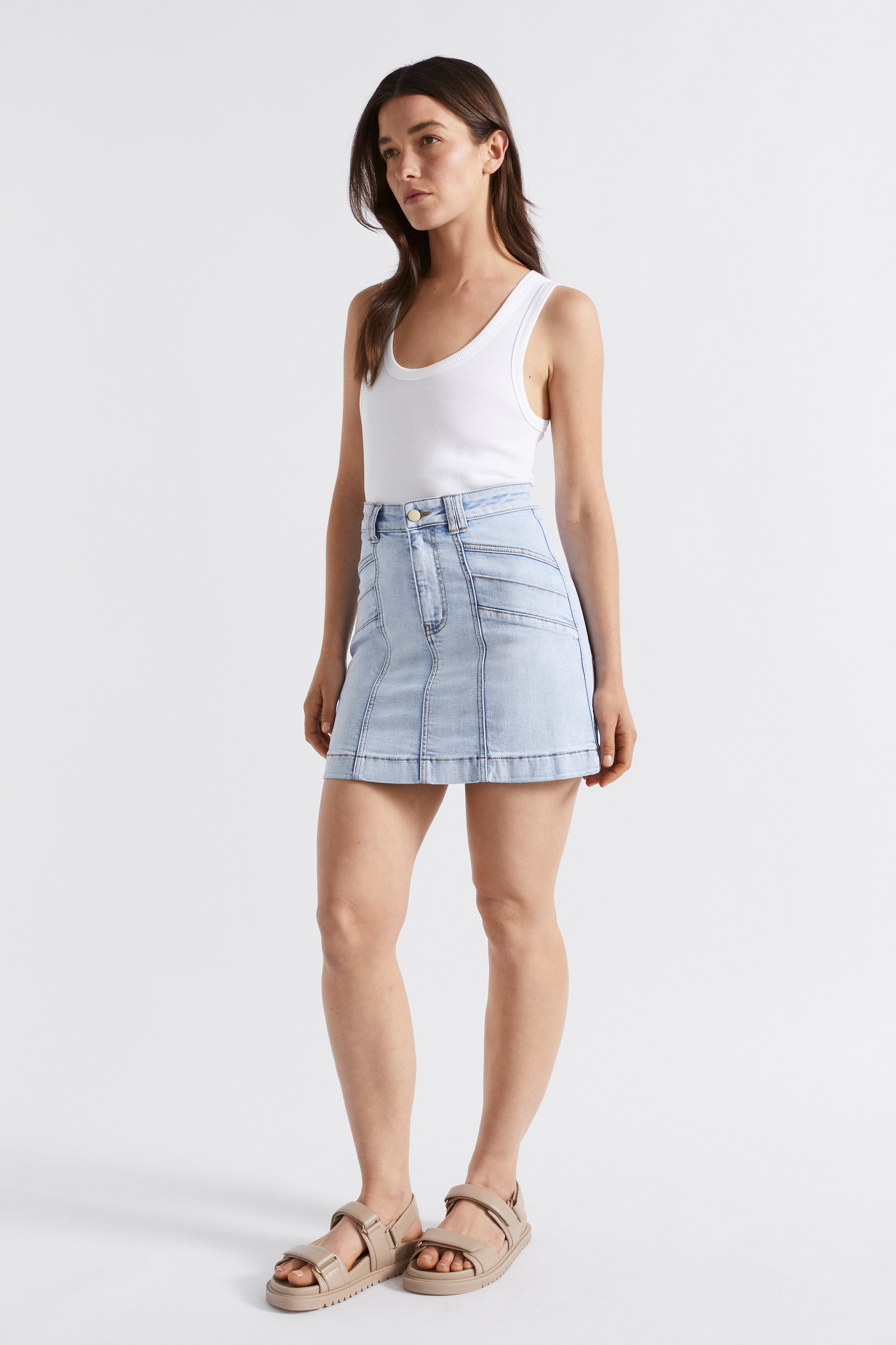 Denim A Line Panel Mini Skirt  Pacific Wash  hi-res Denim A Line Panel Mini Skirt  Pacific Wash  hi-res Denim A Line Panel Mini Skirt  Pacific Wash  hi-res Denim A Line Panel Mini Skirt  Pacific Wash  hi-res