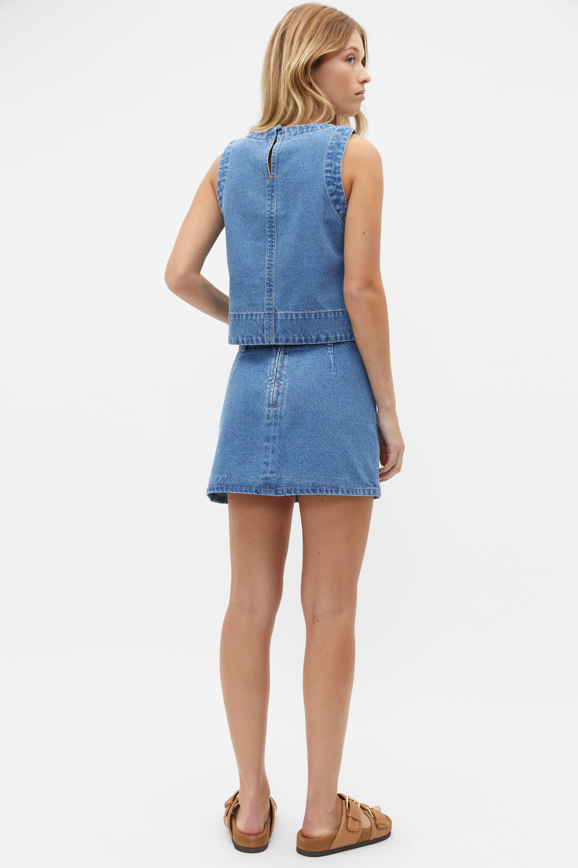 An elevated classic, this denim skirt is perfect for easy summer styling. Crafted in premium cotton, it features a flat front, belt loops, front pockets and a mini length. By choosing our cotton products you're supporting our investment in Better Cotton's mission. This product was sourced via a system of mass balance and therefore may not contain Better Cotton.
