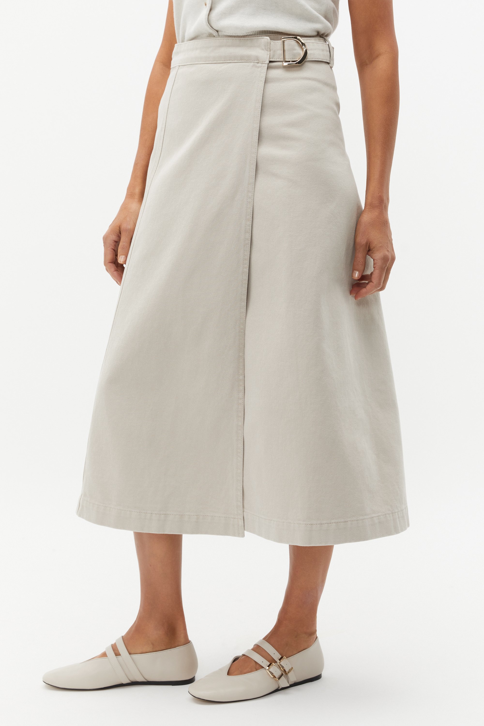 Denim Wrap Front Buckle Skirt  Oat  hi-res Denim Wrap Front Buckle Skirt  Oat  hi-res Denim Wrap Front Buckle Skirt  Oat  hi-res