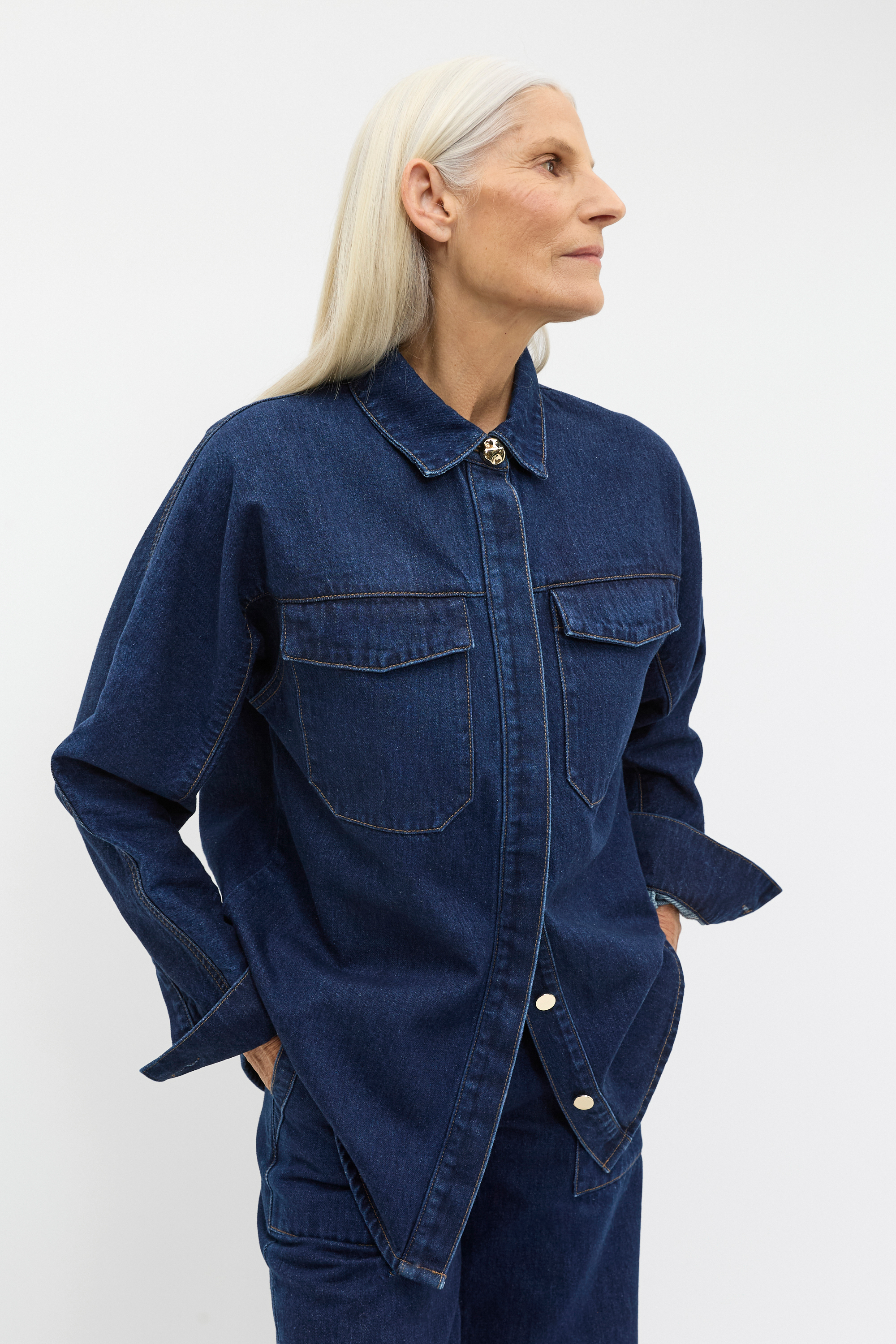 A classic style finished in the new season dark denim, this shirt adds a contemporary touch to your wardrobe and can be worn as a shacket, ideal for layering. Made with premium cotton, it features a collar, long sleeves with adjustable cuffs, a button-front and two breast pockets. With contrast stitching, it's finely crafted to make an impact. By choosing our cotton products you're supporting our investment in Better Cotton's mission. This product was sourced via a system of mass balance and therefore may not contain Better Cotton.