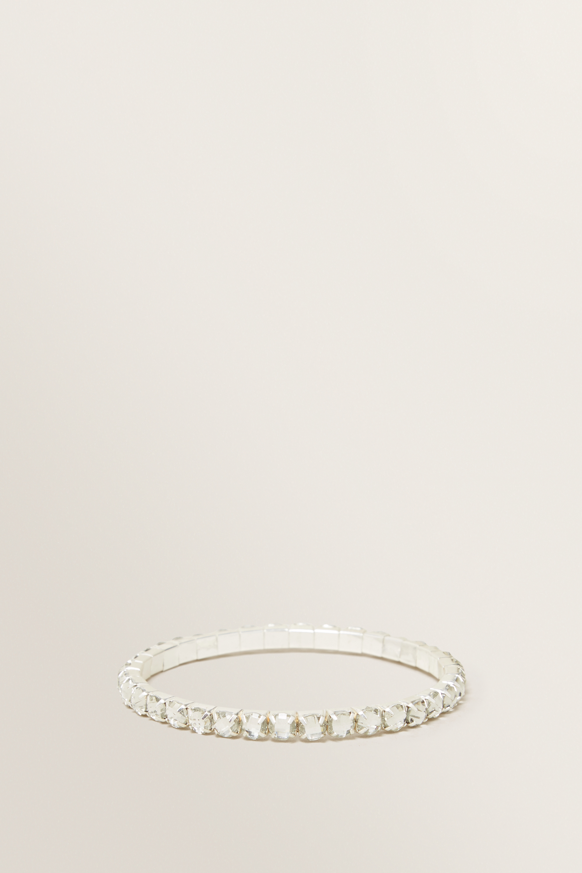 This Diamante Stretch Bracelet features glitzy glass stones and stretchy design for a comfortable fit. Made from a Glass/Metal/Polyester, it is available in a range of colours. Available in one size, this Diamante Stretch Bracelet is not recommended for children under three, due to choking hazards.