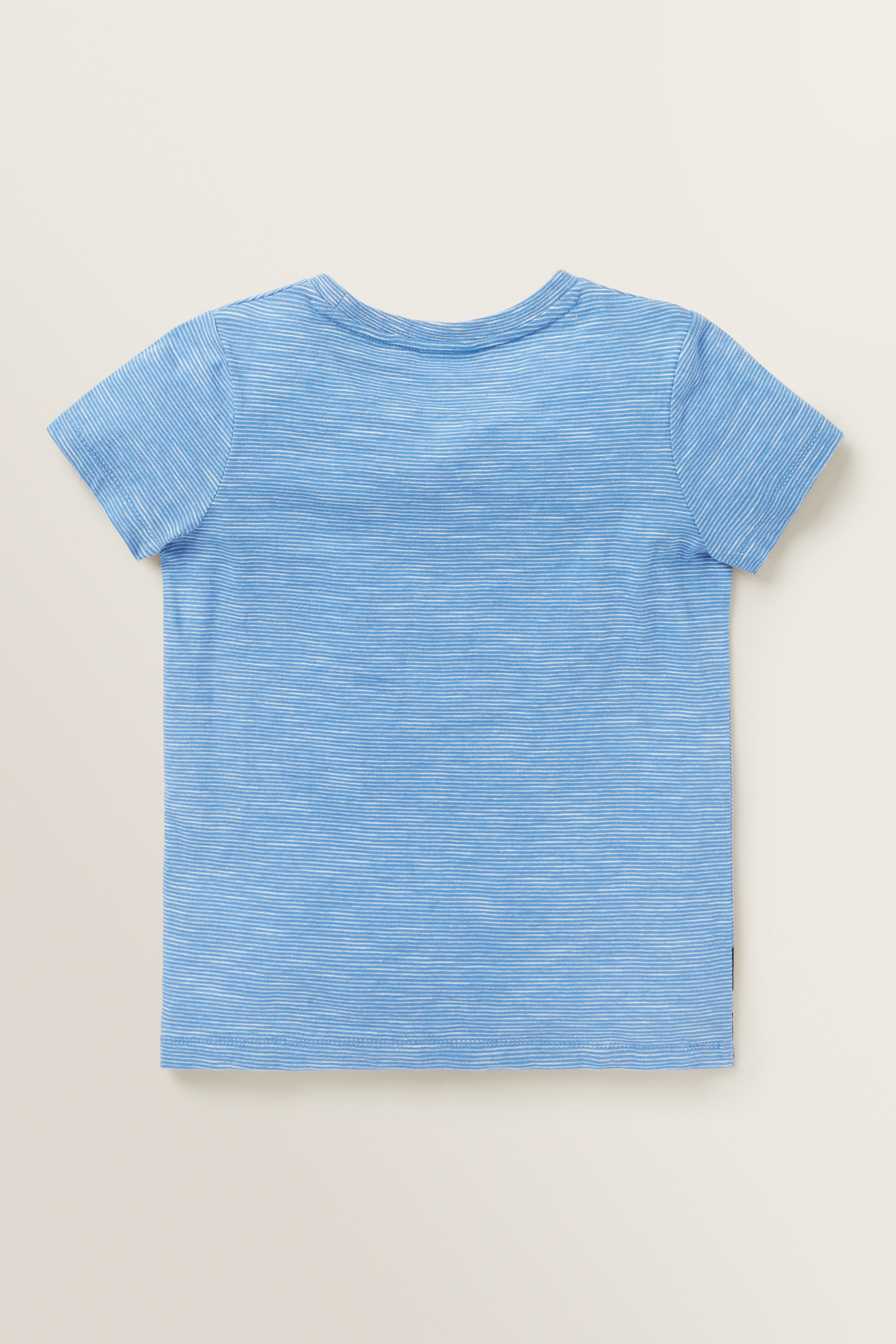 Lights, Camera, Action! This Dino Scene Tee will have him reminicing on movie nights under the stars. This tee features a shadowed dinosaur print, contrasting against a midnight sky. Designed with a crew neckline, it is detailed with short sleeves and a super soft jersey body. Made from a 100% Cotton blend, it is available in sizes 2 to 10. For care instructions, refer to the label inside of the garment.