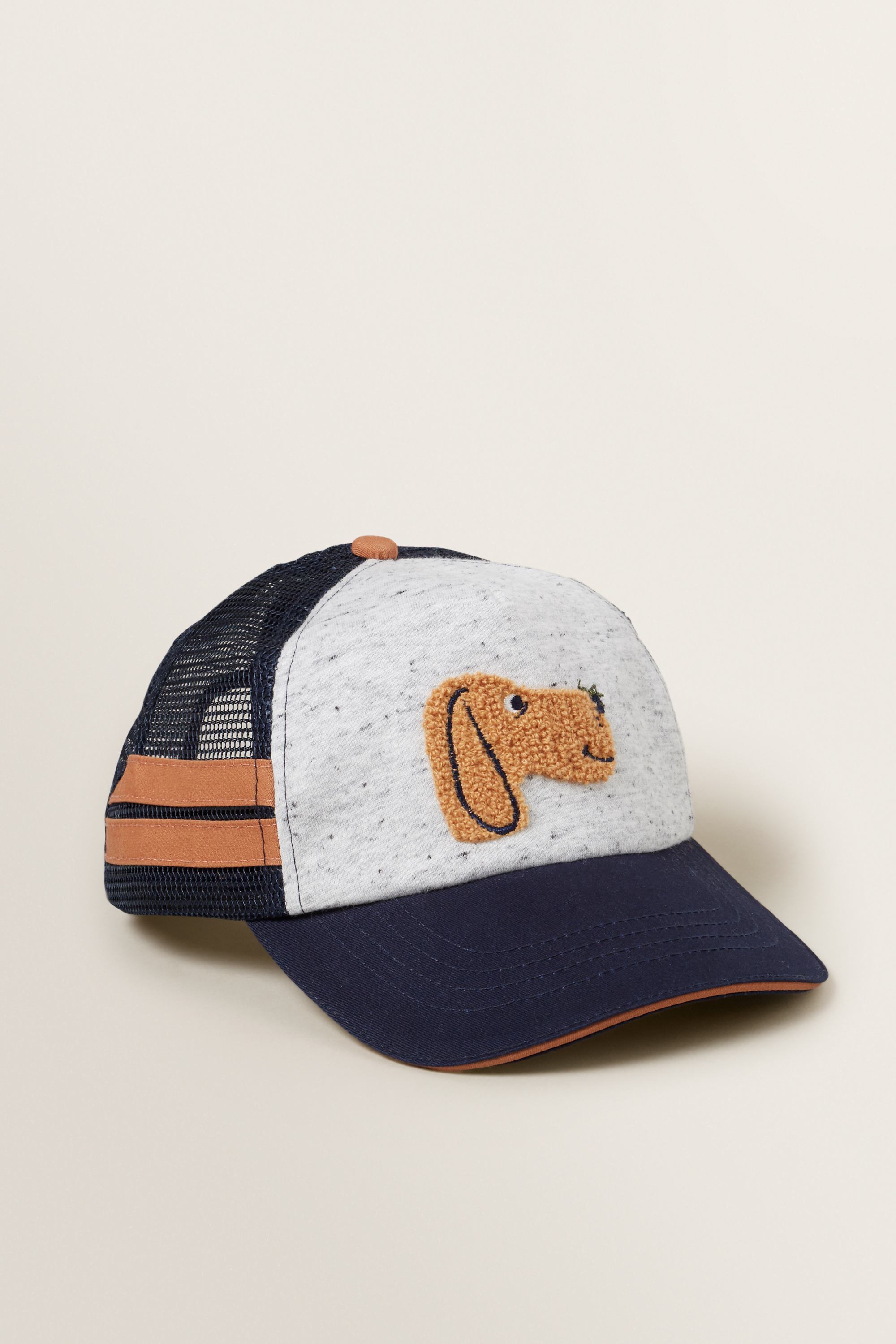 Playfully pounce into this season, wearing this Dog Cap. Featuring an embroidered motif, this cap is detailed with a curved peak, mesh panel inserts and an adjustable backing. For care instructions, refer to the label inside of the garment.