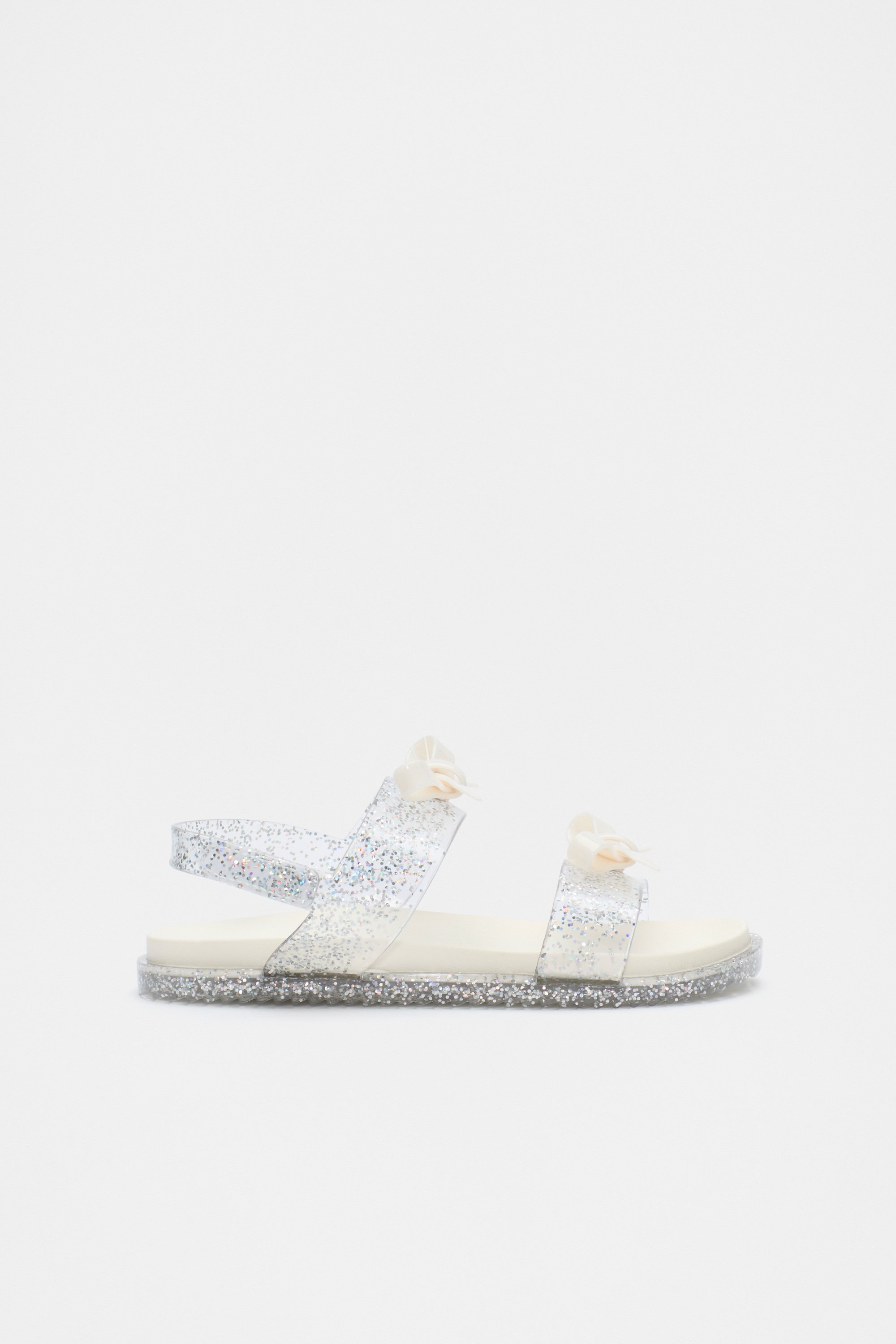 A playful summer essential, these sandals feature two glitter straps each with the sweetest bow detail and secure with a hook-and-loop closure. Crafted in a comfortable jelly, they're perfect for the beach or pool.