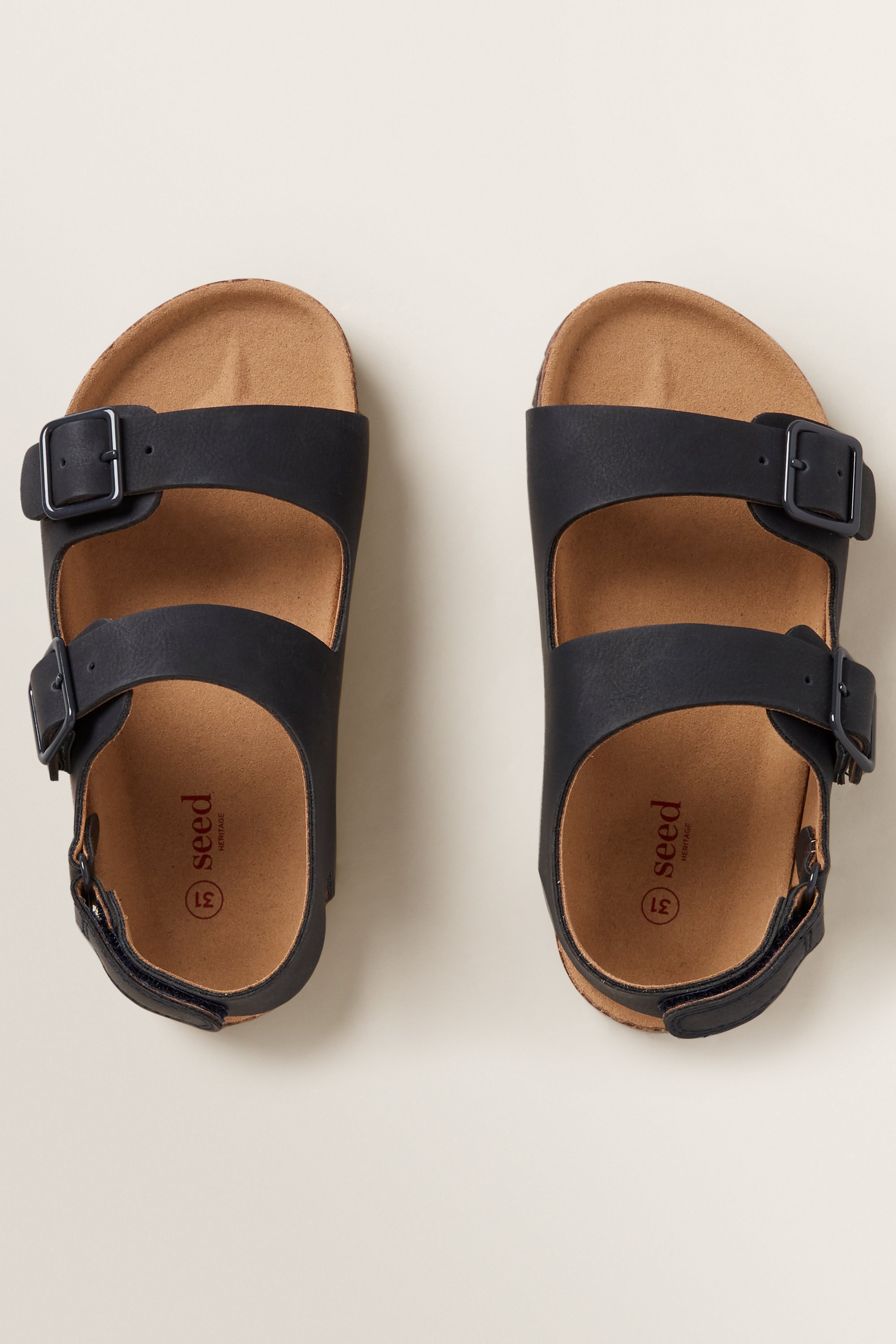 In a PU Suede Upper, these Double Buckle Slides are the perfect addition to his Seed wardrobe. Detailed with a comfy sling-back ankle, they feature two large buckle straps across the feet. Available in sizes 23 to 35, these Double Buckle slides are perfect for warmer days ahead.