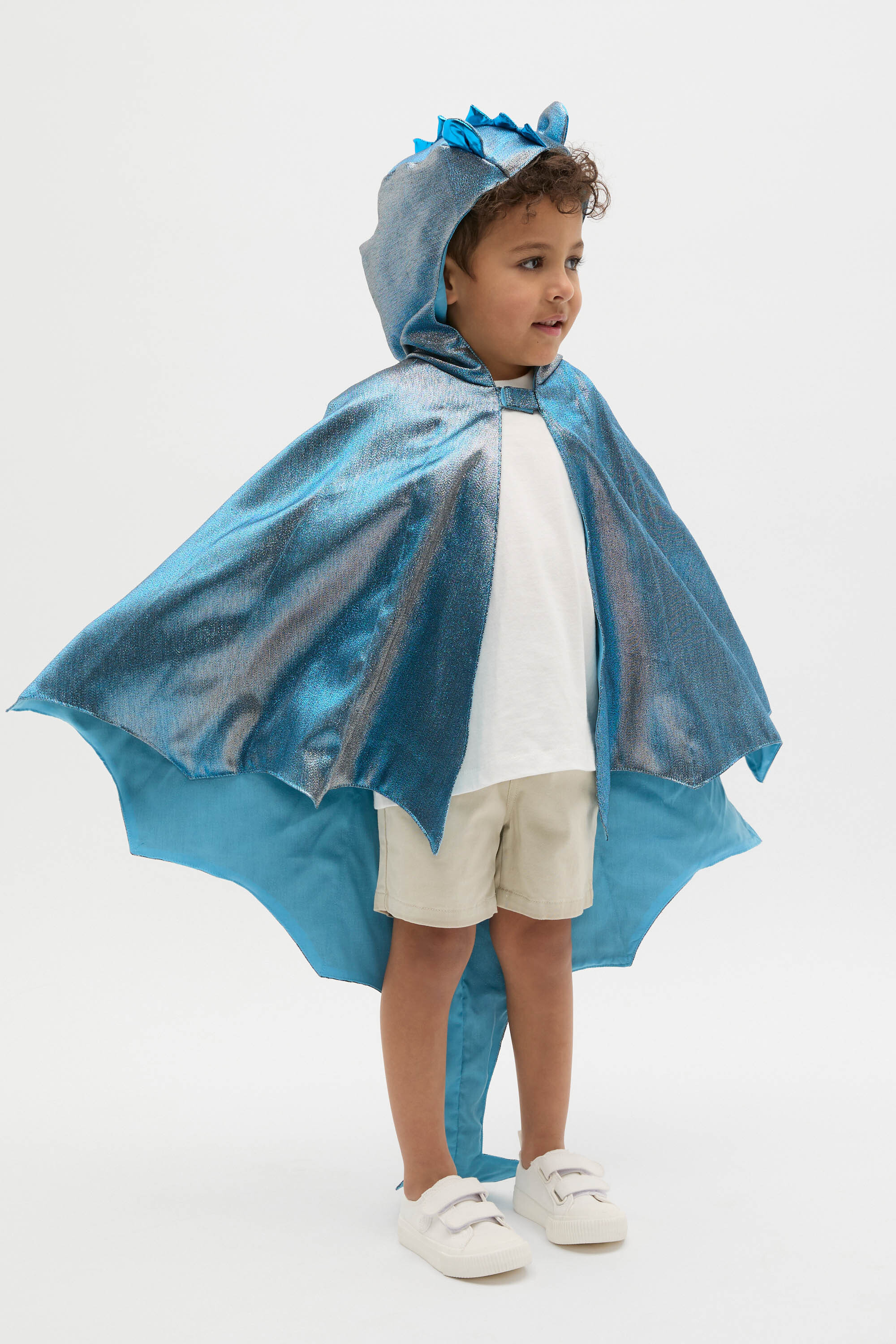 Ready for adventuring, this dragon costume guarantees hours of fun imaginative play. It features dragon ears, a spiky spine, a tail and a sparkling finish. Not recommended for children three years and under.