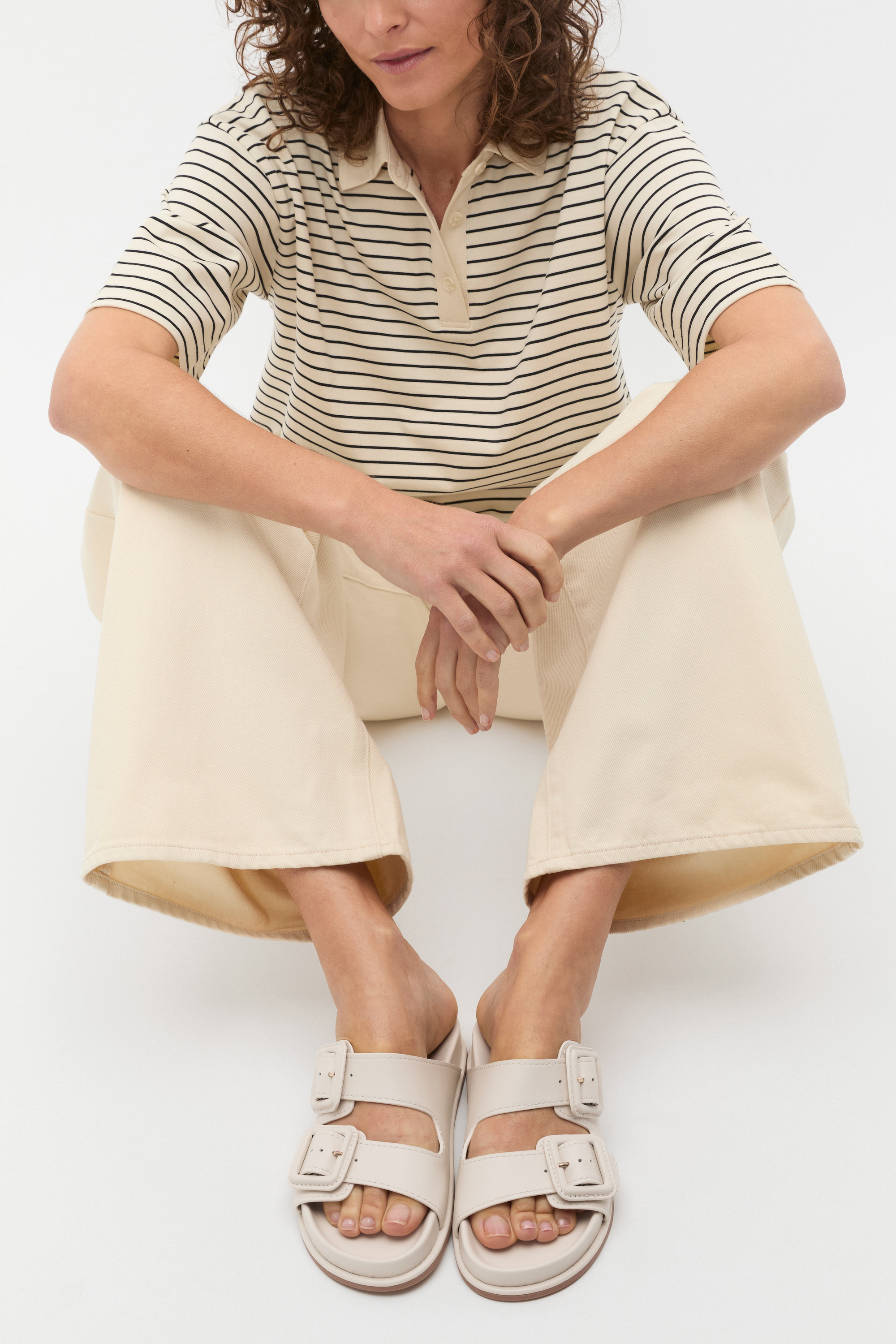 Effortless and chic, these slides are an easy pair for comfort and sophistication. Crafted with a premium leather upper, they feature a two strap design with a covered buckle detail. For a comfortable fit, they have a moulded footbed. As a proud member of Leather Working Group, Seed supports their mission of greater transparency and continuous improvement, helping to create more responsible leather production. For more information, please visit Leather Working Group.