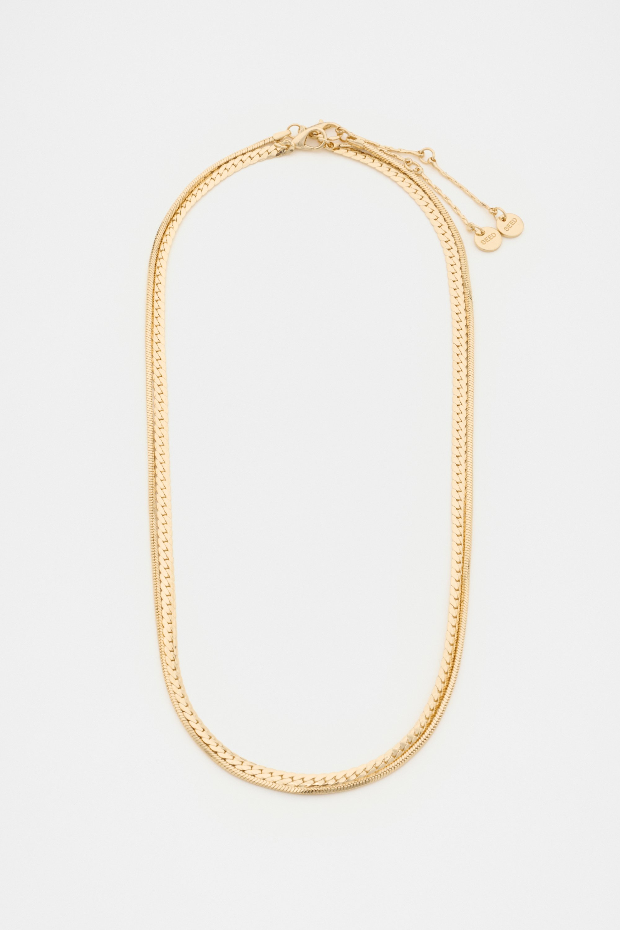Refined and elegant, this duo of necklaces add a touch of luxury to your look. Featuring two separate necklaces on a diamond cut snake chain.