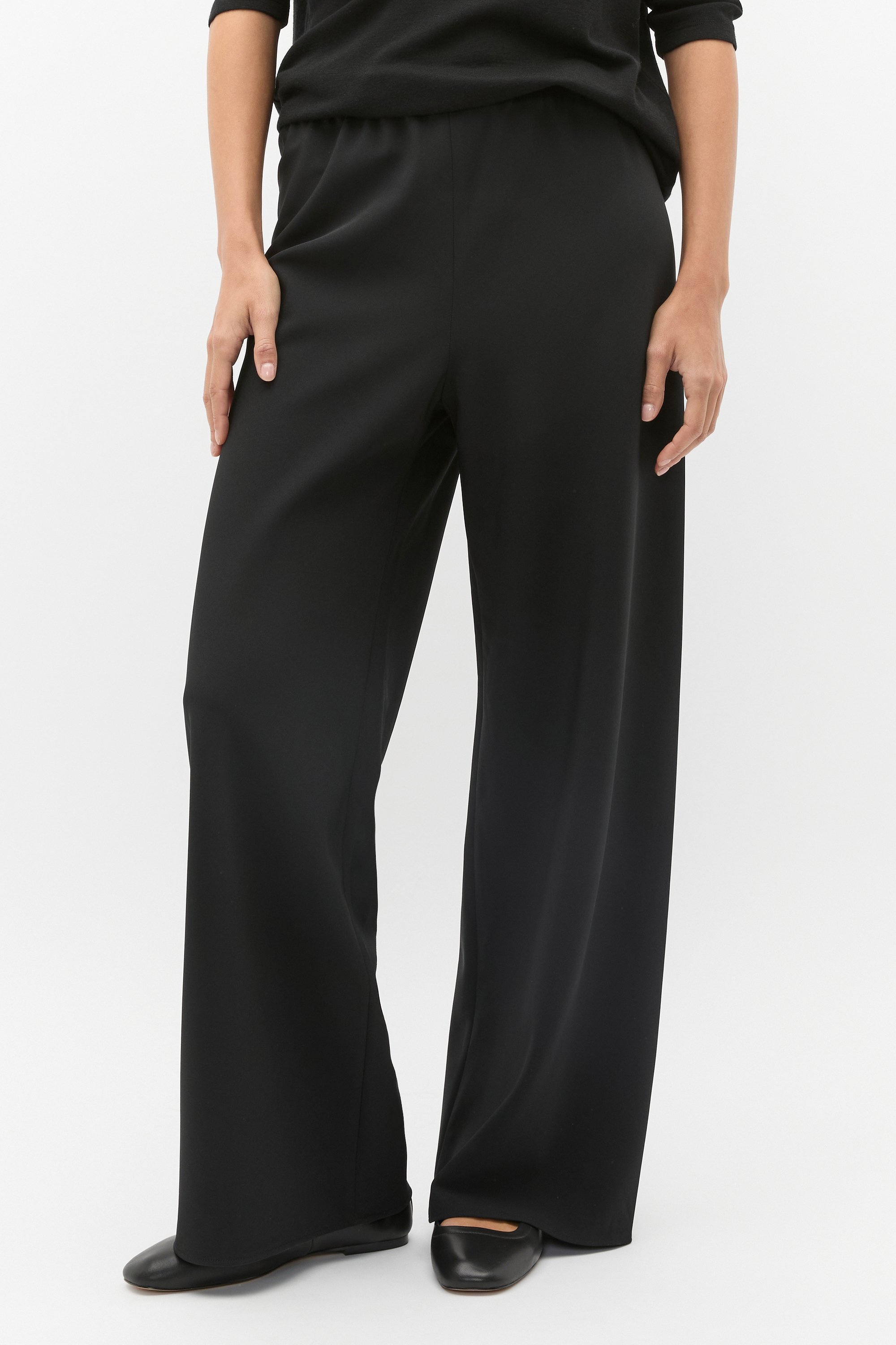 A versatile style for your wardrobe, these pants have an elasticated waistband for every day comfort. With a smooth finish, they feature a wide leg and are an easy option to dress up or down.