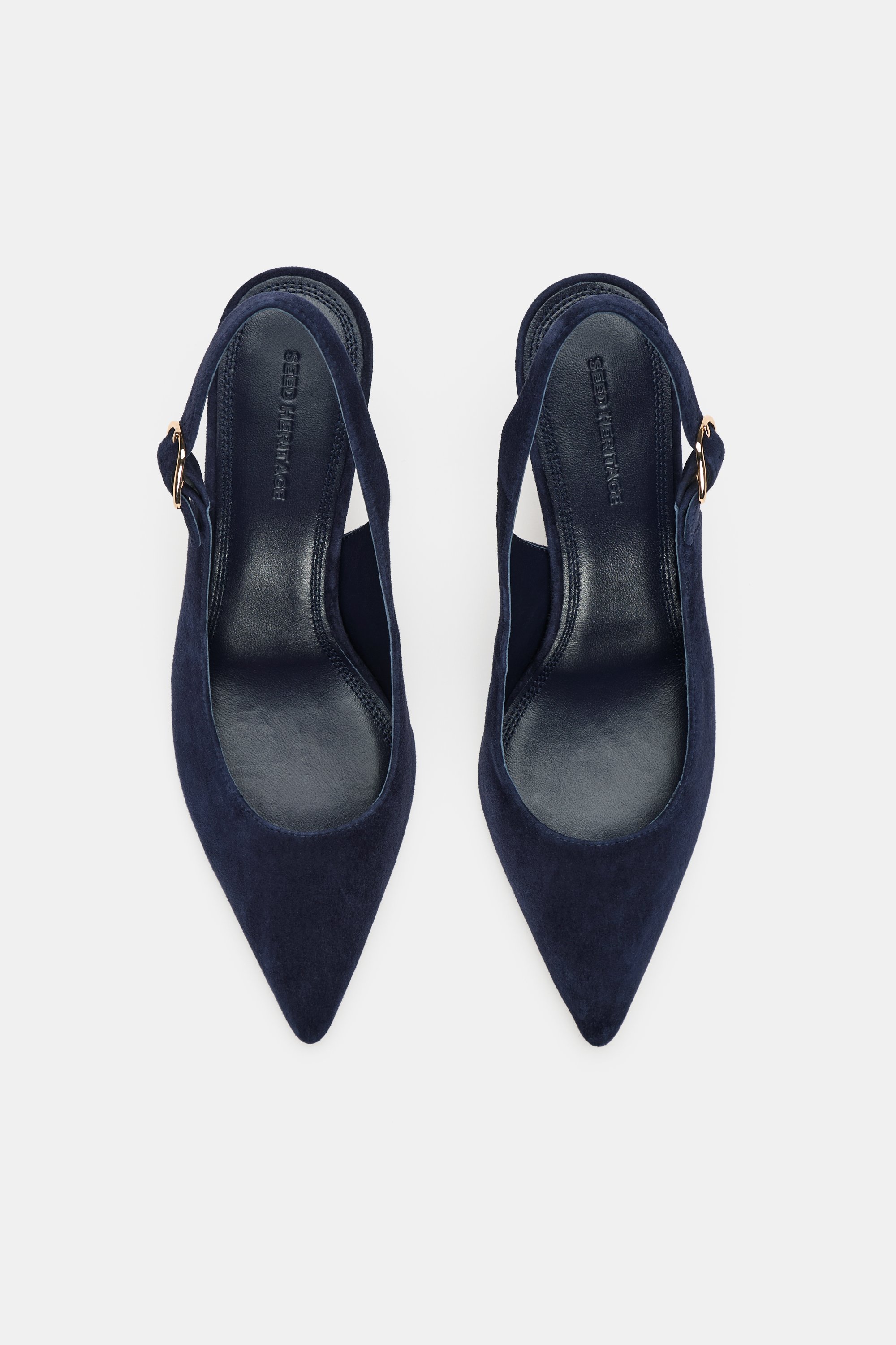 Effortlessly chic, these pumps offer easy elegance to your wardrobe update. Crafted in premium leather, they're a slingback style and feature a pointed toe and a gold-tone buckle detail. Seed Heritage leather products support responsible manufacturing via the Leather Working Group.