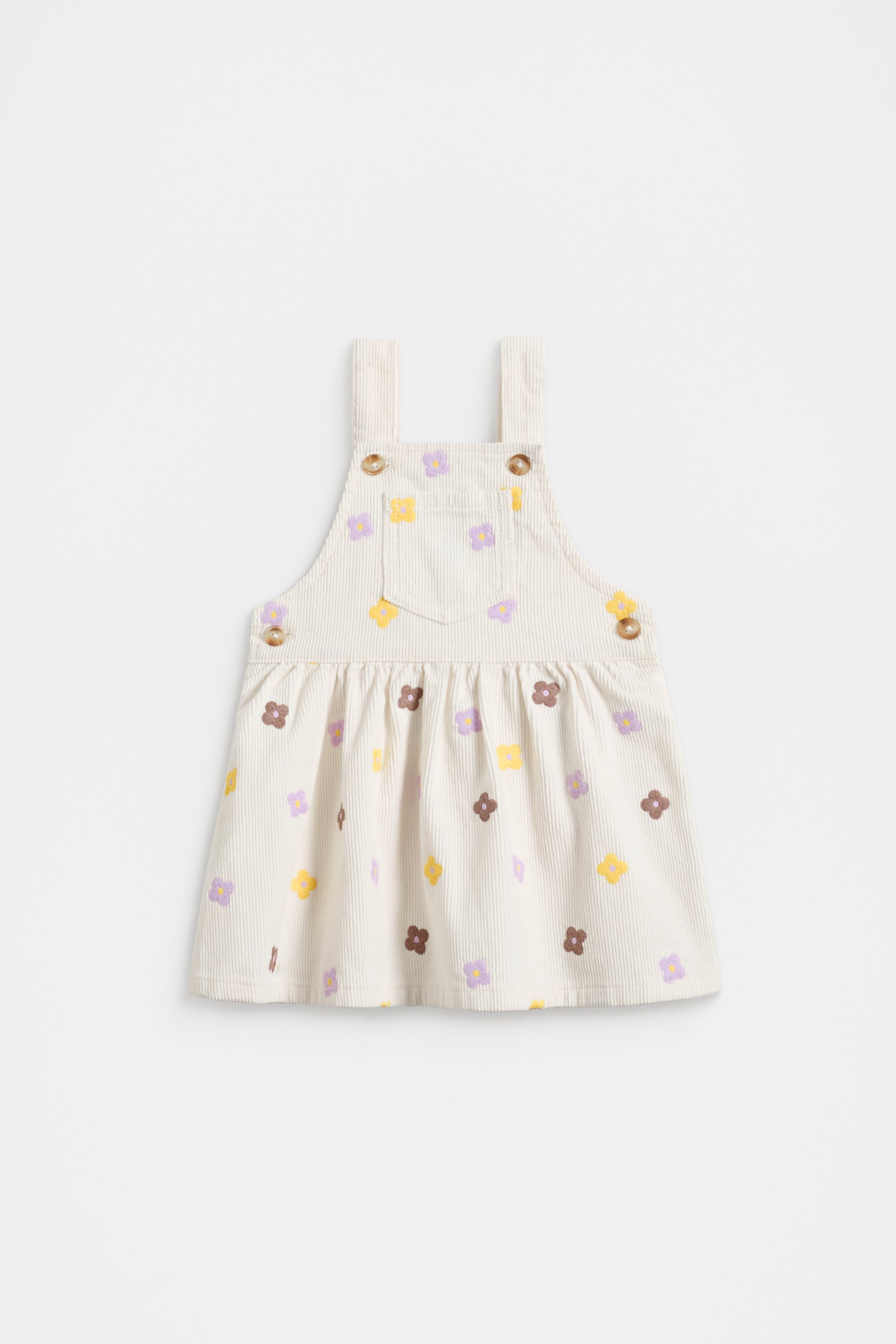 Cheerful and cute, this pinafore features a design of embroidered flowers. It's crafted in premium cotton and has button straps and buttons at the side for a comfortable fit. For a matching moment, style with the coordinating cord apparel pieces or accessories.