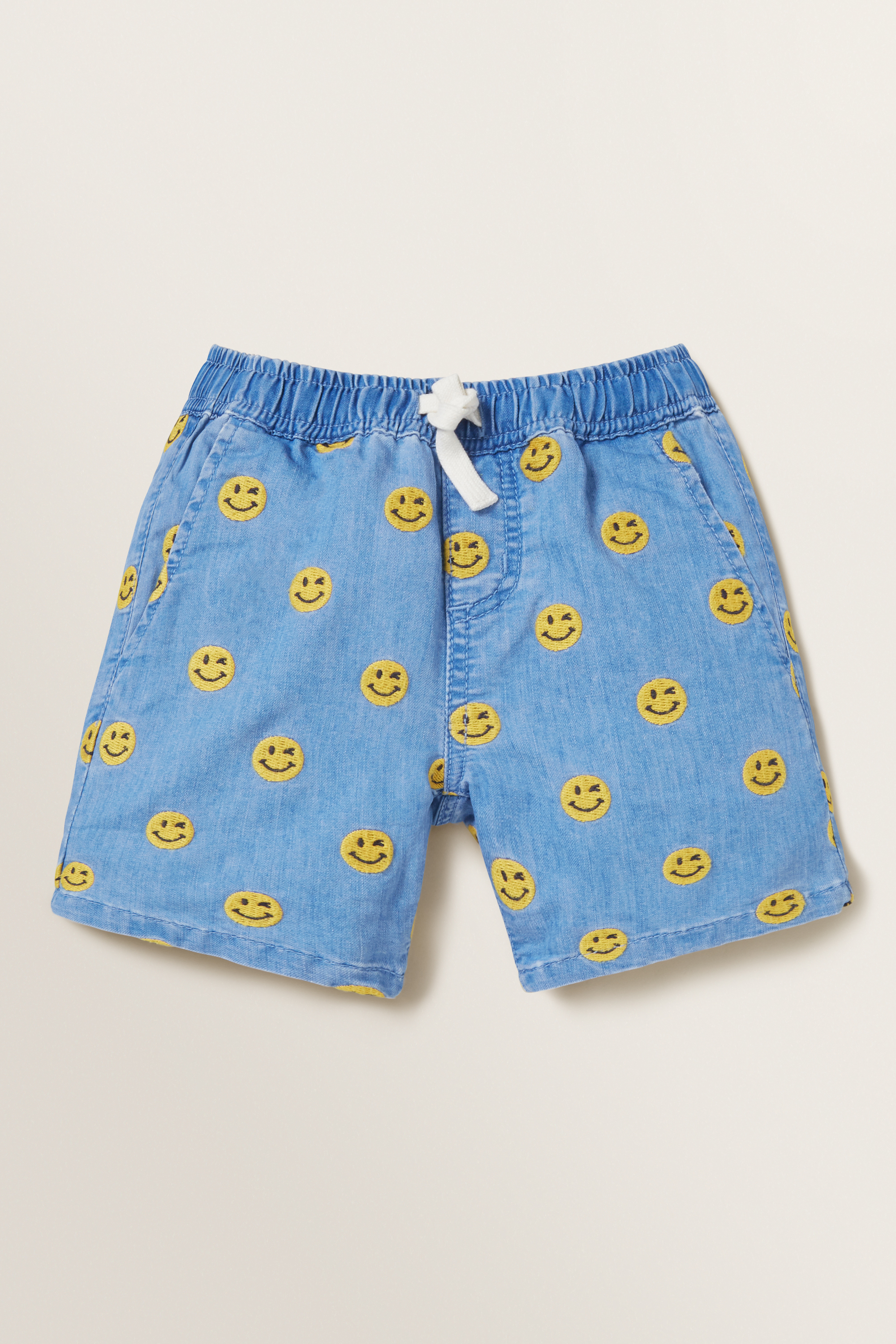 Decorated with a smile motif, these Embroidered Shorts are made for outdoor play.