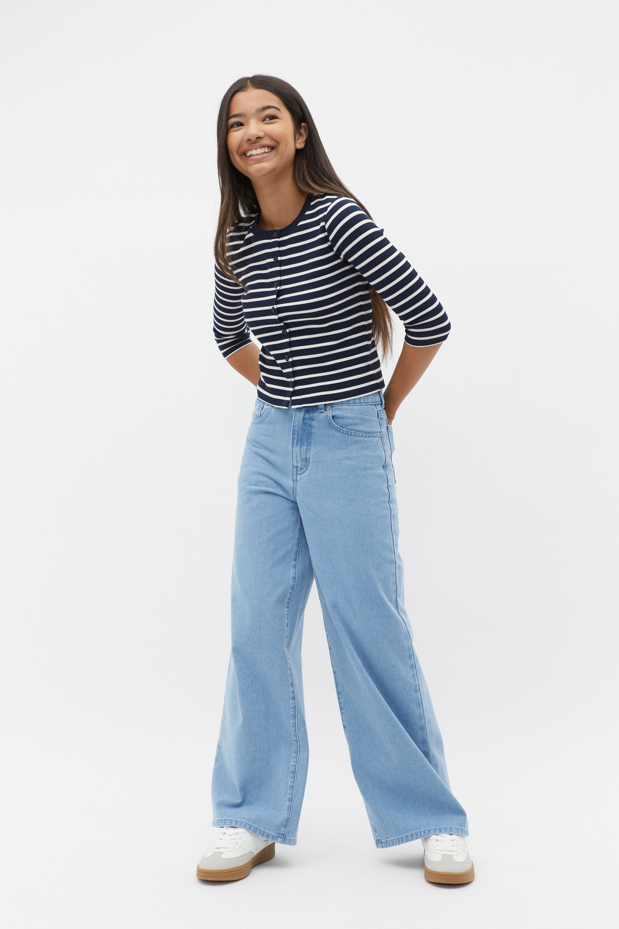 Her new favourite pair, these jeans are ideal to elevate her everyday. Crafted in premium cotton, they feature a fixed waistband, a zip front, belt loops, pockets and a wide leg shape. For versatile styling, they're available in two different colours.