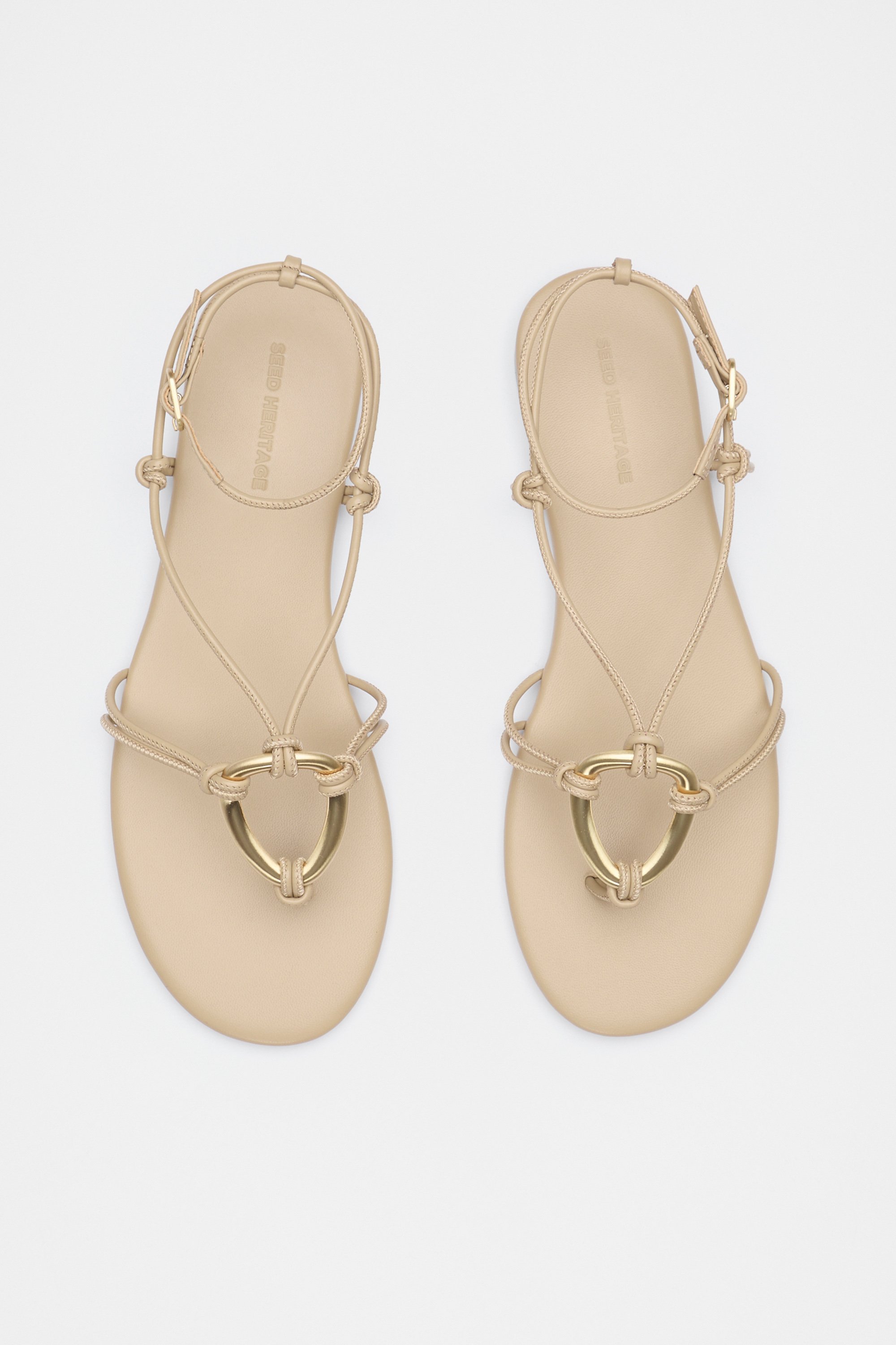With a statement ring detail, these shoes are an elevated take on a casual sandal. Crafted in premium leather, they feature a fine strap upper, an adjustable ankle fastening and gold-tone hardware. As a proud member of Leather Working Group, Seed supports their mission of greater transparency and continuous improvement, helping to create more responsible leather production. For more information, please visit Leather Working Group.