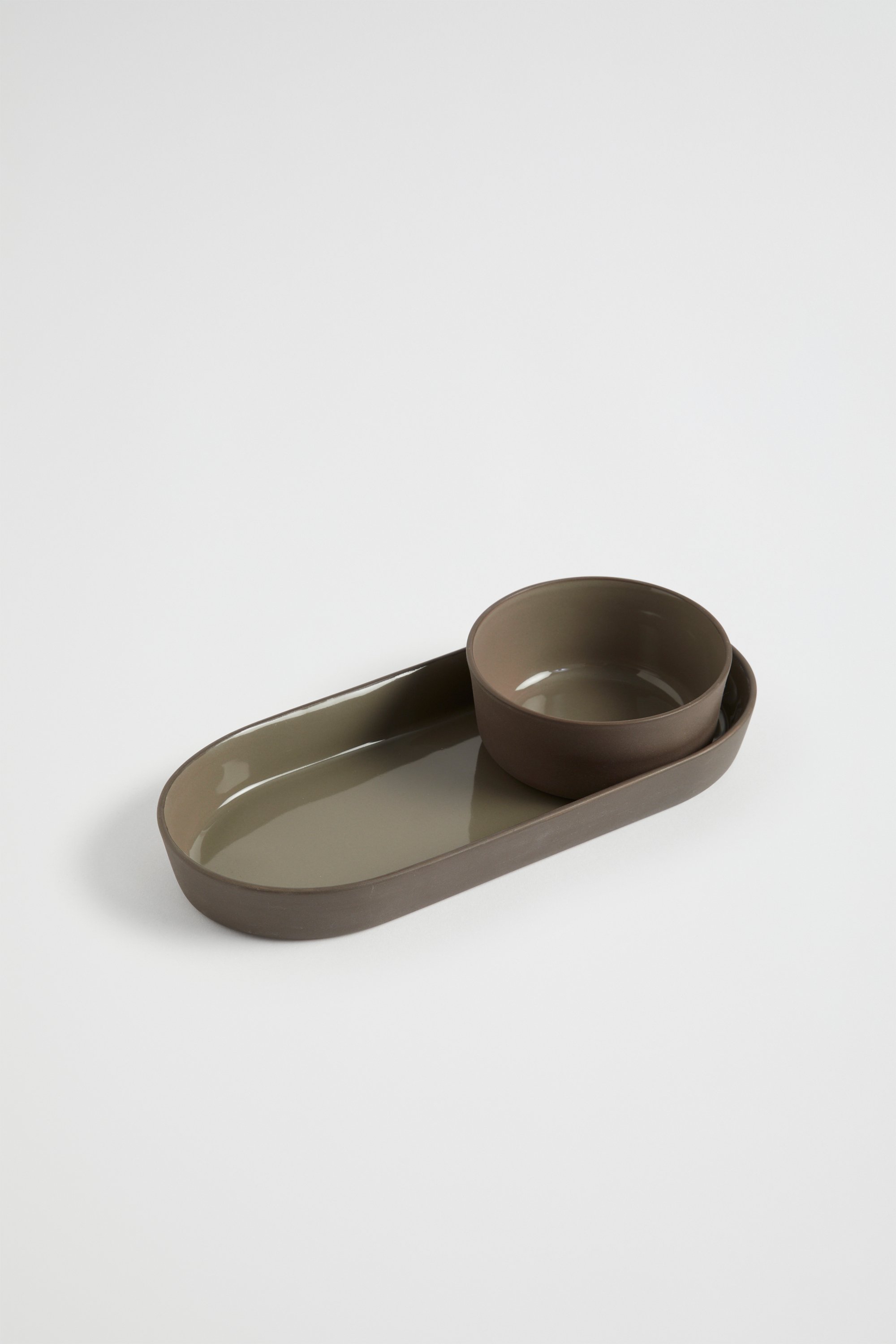 Add a contemporary feel to your space with this minimal tray. Featuring a smooth, glazed interior and a textured, unglazed exterior, this tray can be styled back with the matching tapas bowls, spoons and plates.