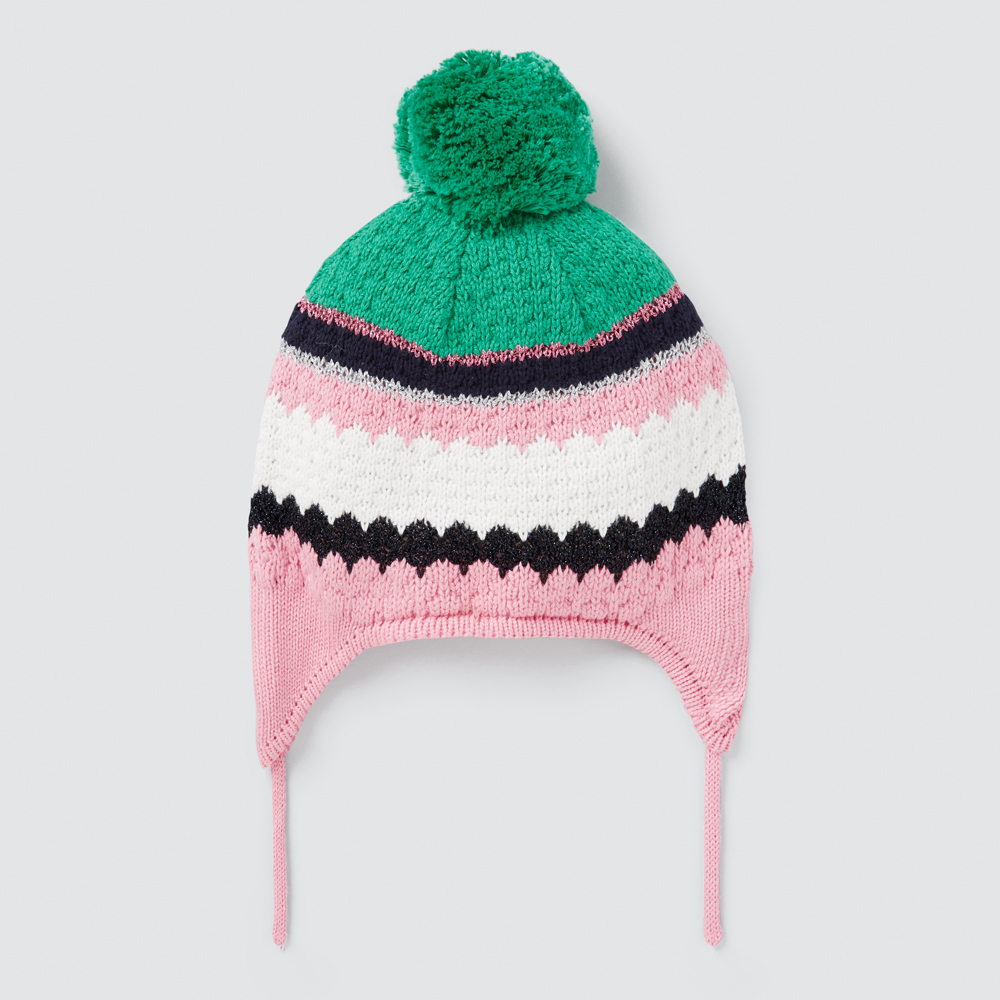 This beanie features an all-over fair isle fabrication and oversized pom pom on the top. Made from cotton/metallic/wool, this beanie is available in Multi and in sizes SM and ML.