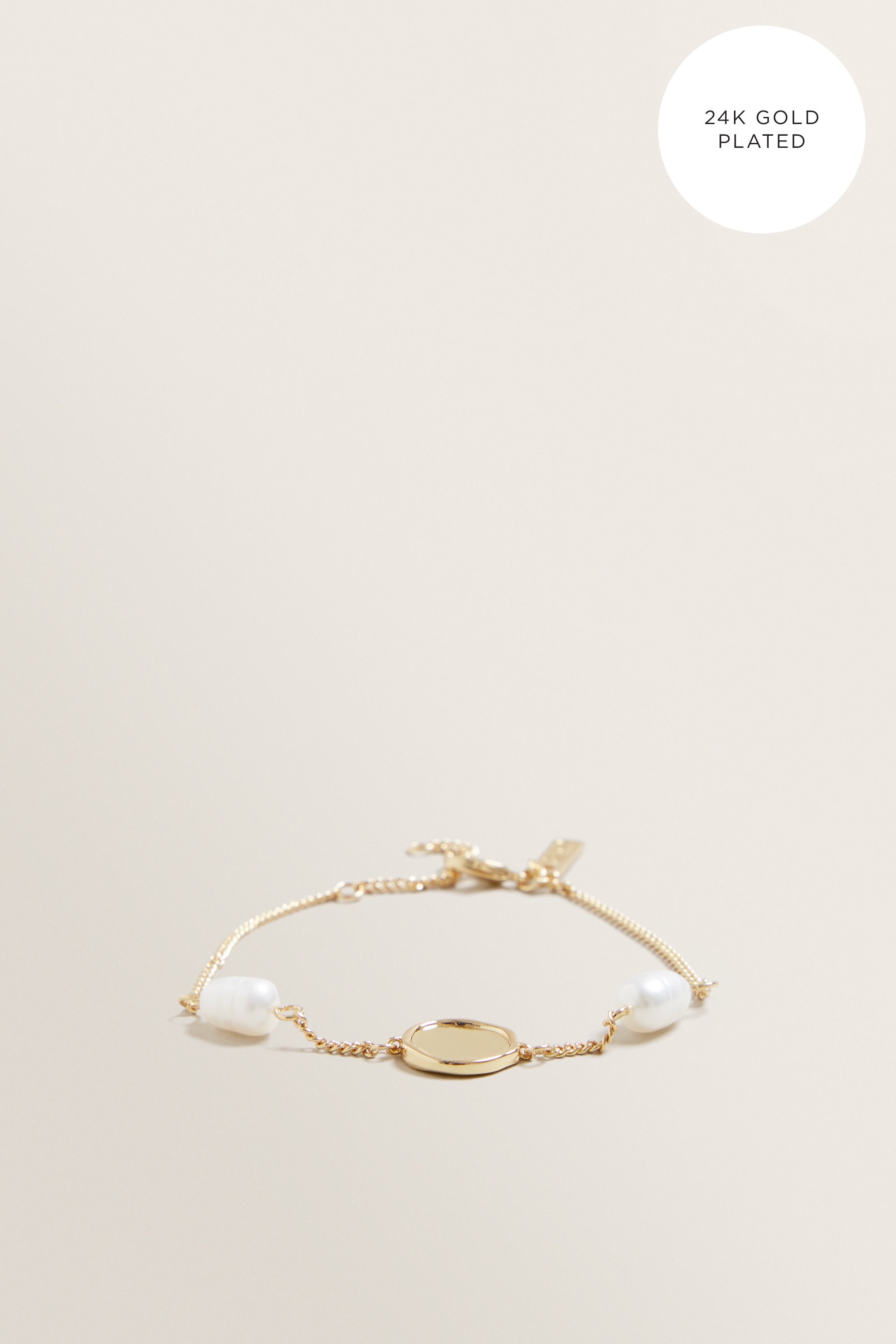 Introduce a delicate element to your Seed rotation, with this 24K plated collection. This Fine Pearl Disc Bracelet is detailed with stunning freshwater pearls, adjustable chain and a latch closure.