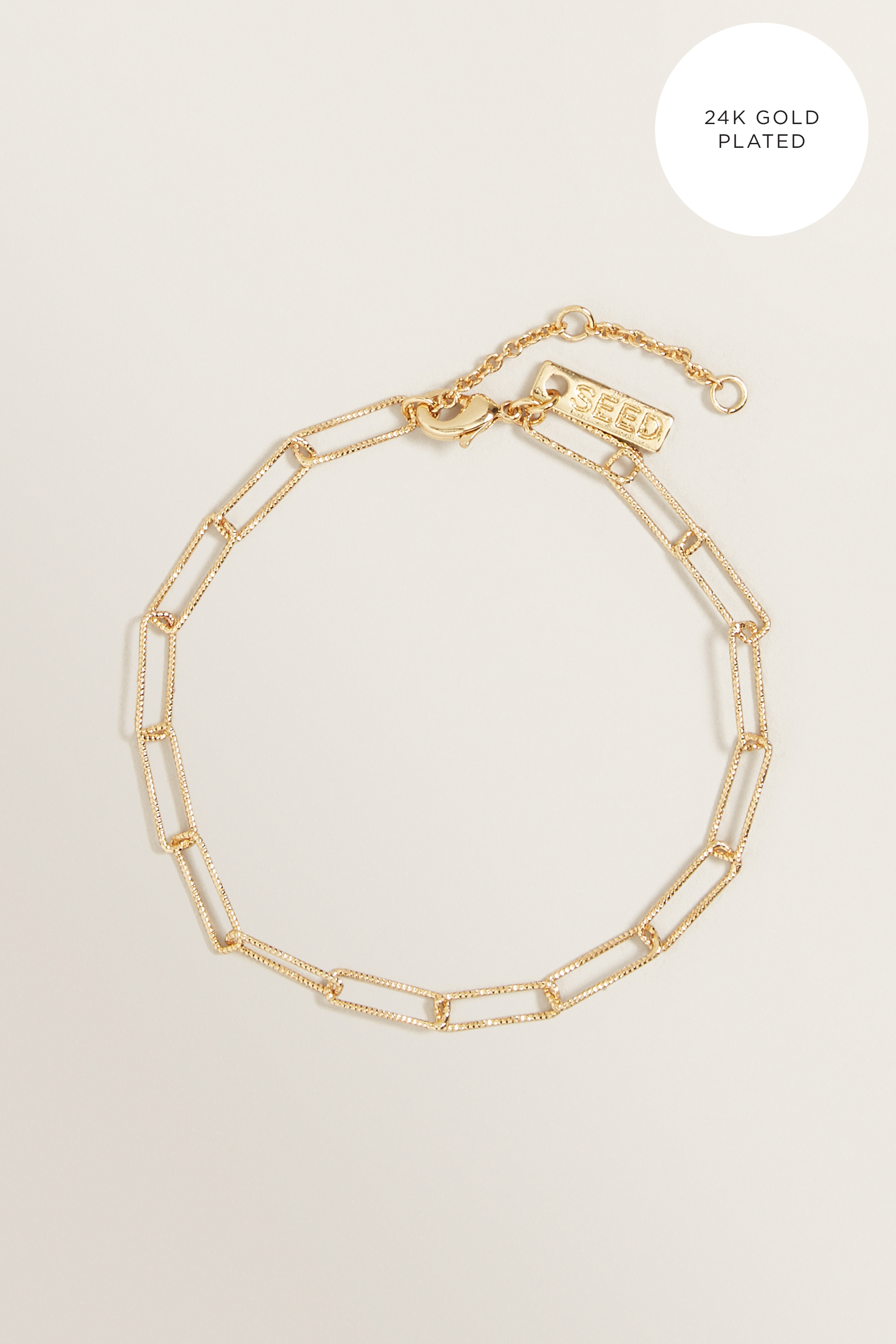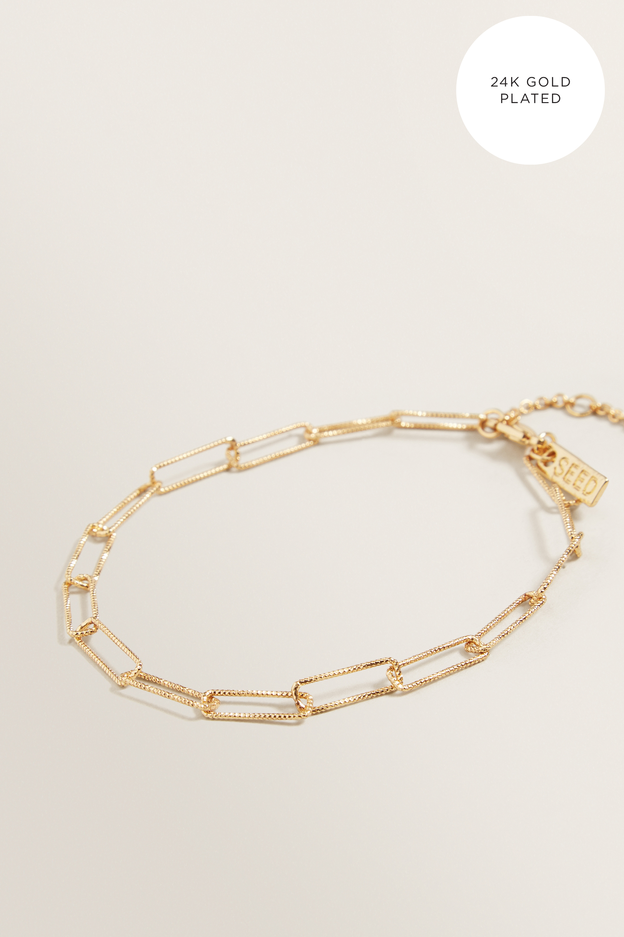 Introduce a delicate element to your Seed rotation, with this 24K plated collection. This Fine Wide Chain Bracelet is detailed with a cable link chain and adjustable closure.