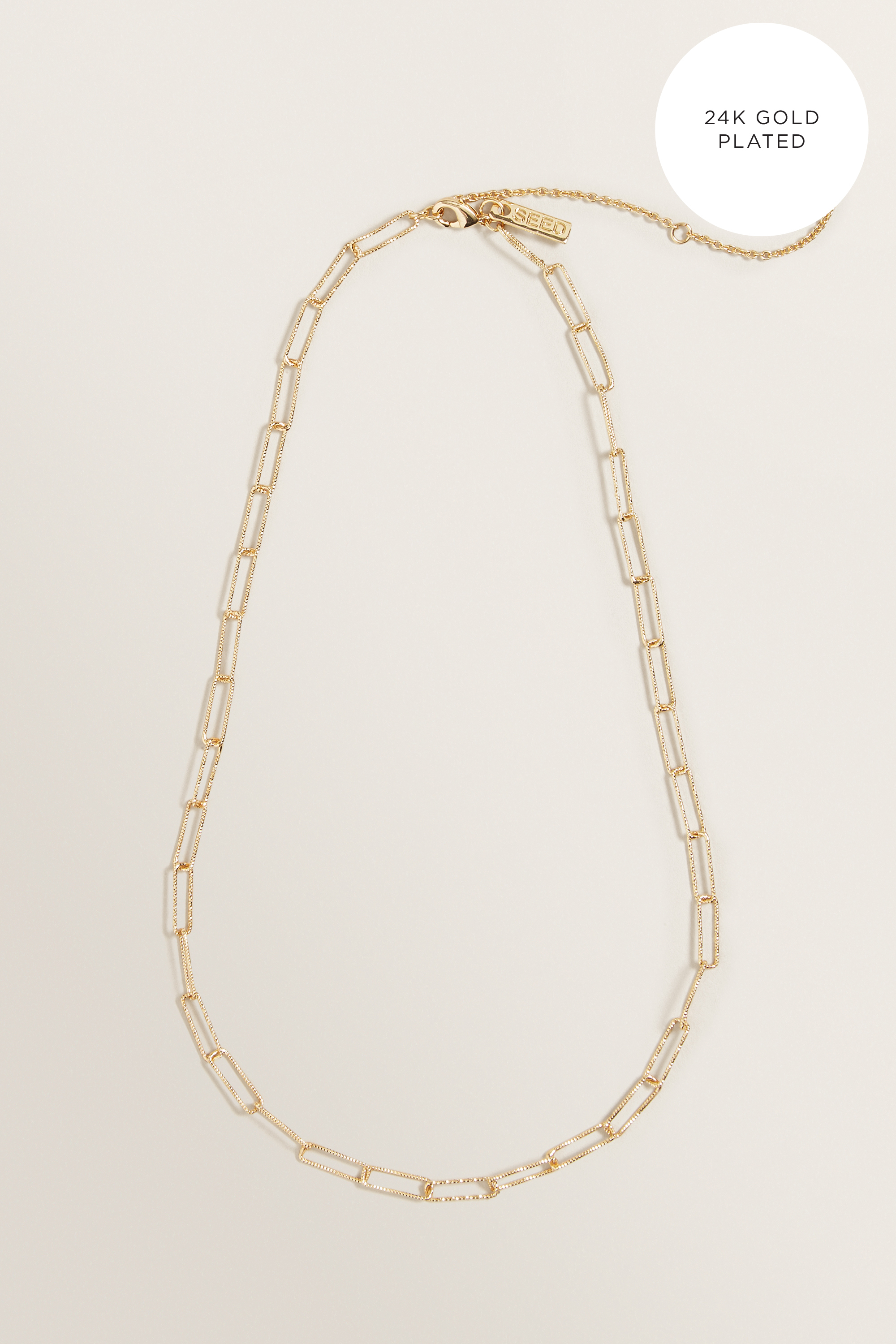 Introduce a delicate element to your Seed rotation, with this 24K plated collection. This Fine Wide Chain Necklace is detailed with a cable chain and adjustable closure.