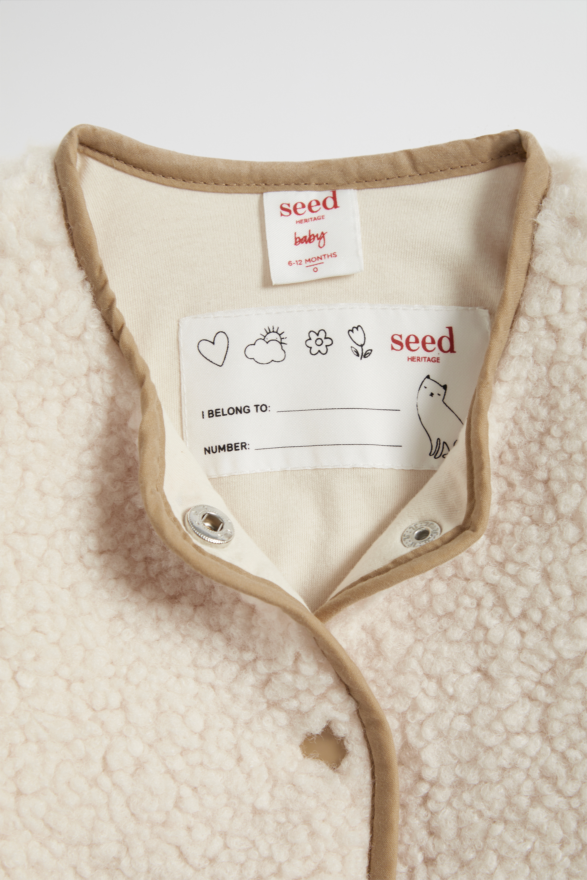 Finished in a cosy teddy texture, this is set to be your little one's winter go-to. It has a round neck, a button front, patch pockets, and contrasting piping details. It's lined with cotton for all-day comfort.