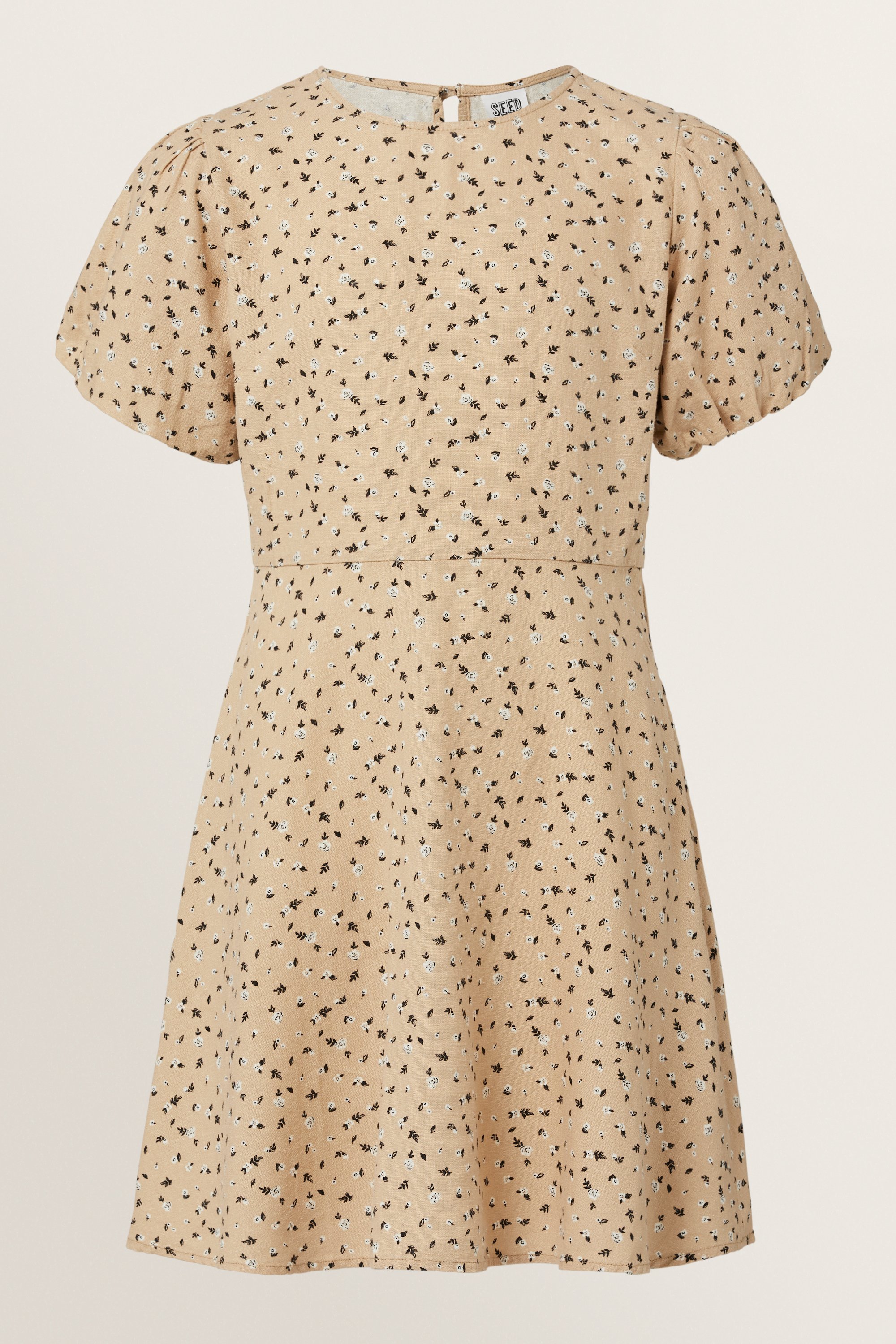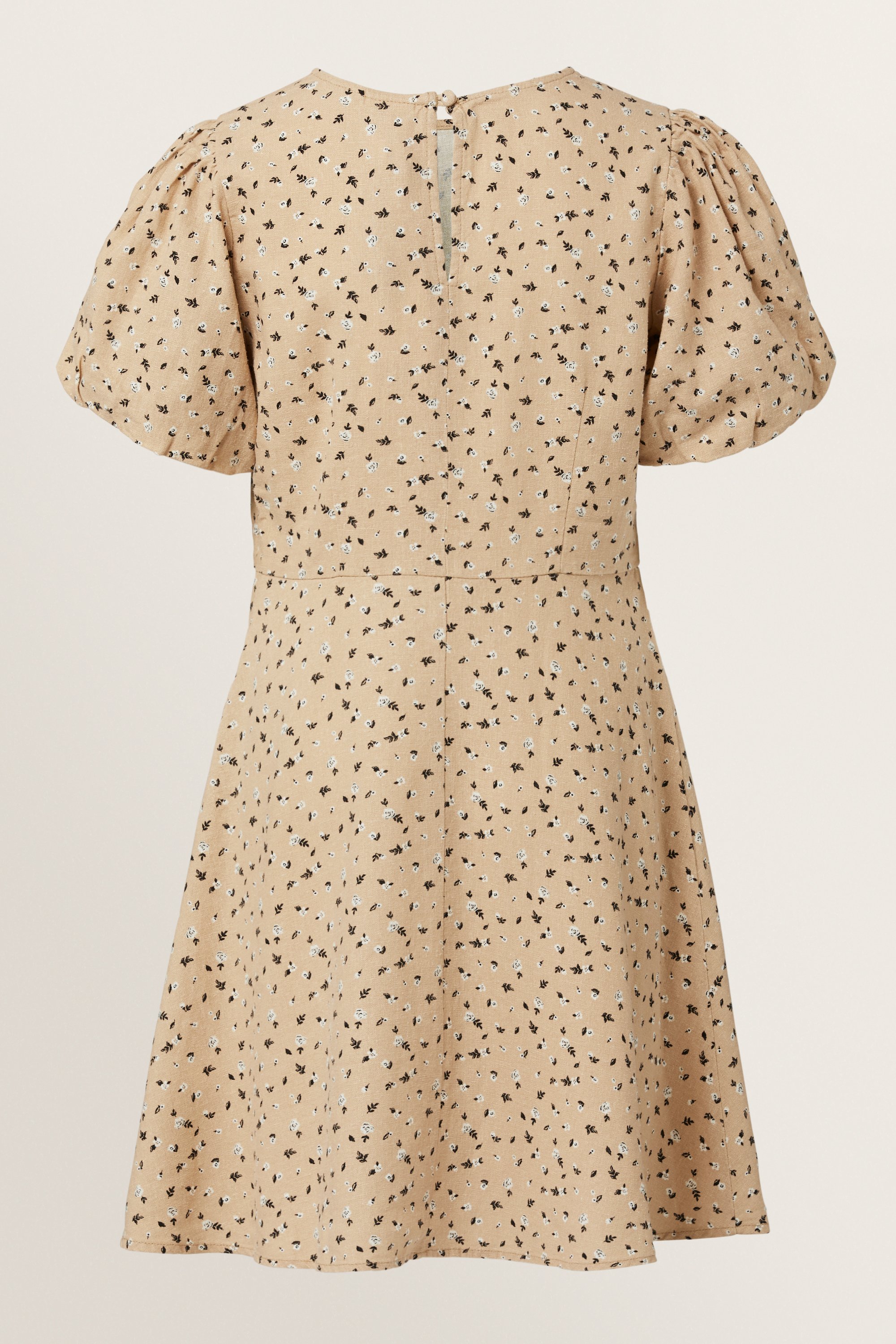 Designed with a beautiful blossom yardage print, this Floral Dress is crafted from a breathable linen/viscose blend, detailed with a round neckline, puff sleeves and flared skirt.