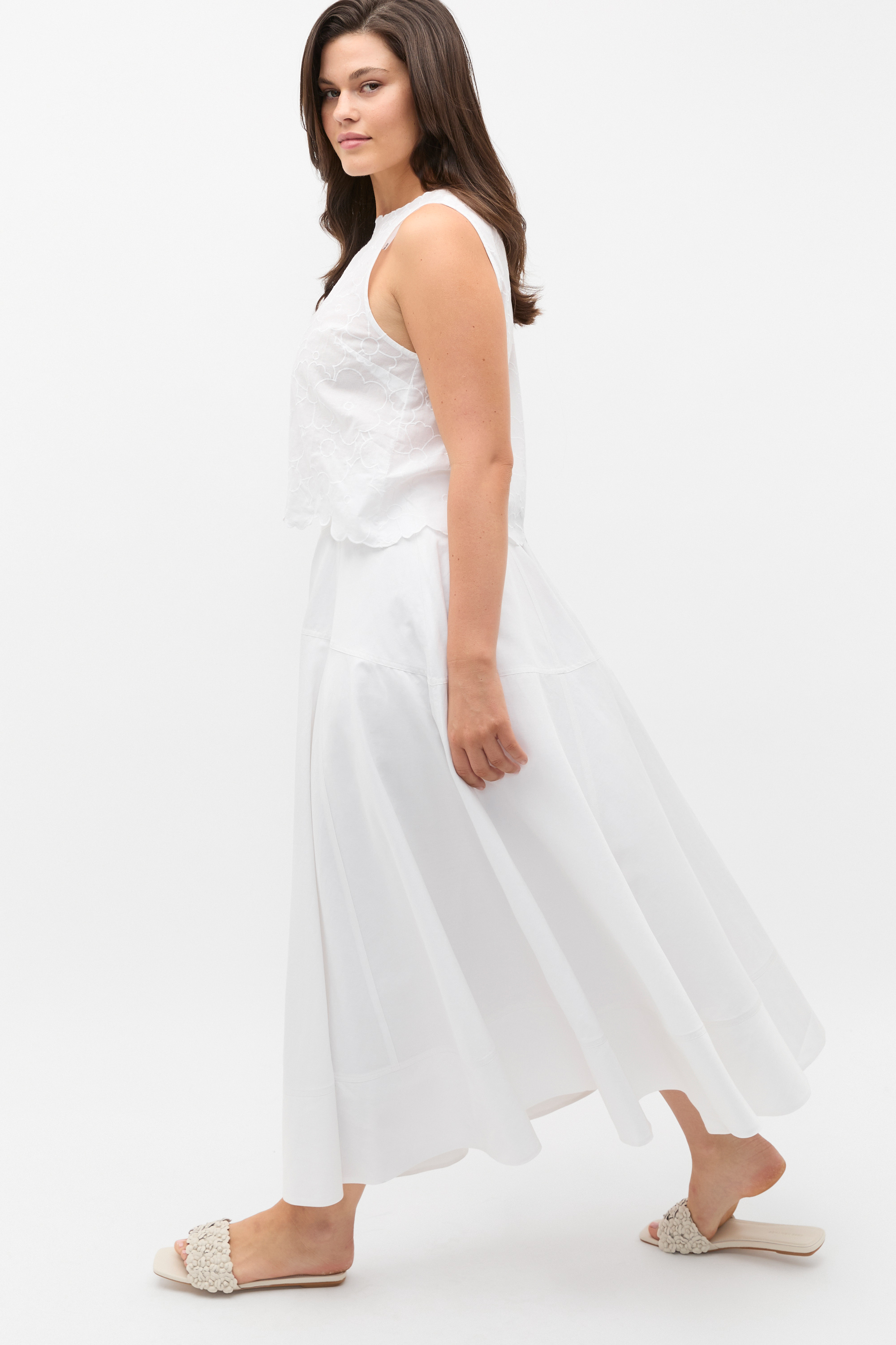 Lightweight and feminine, this shell top is a classic design bringing style to your summer days. Crafted in premium cotton, it features an embroidered floral design with a sleeveless shape, a round neck and securing with ties at the back of the neck.