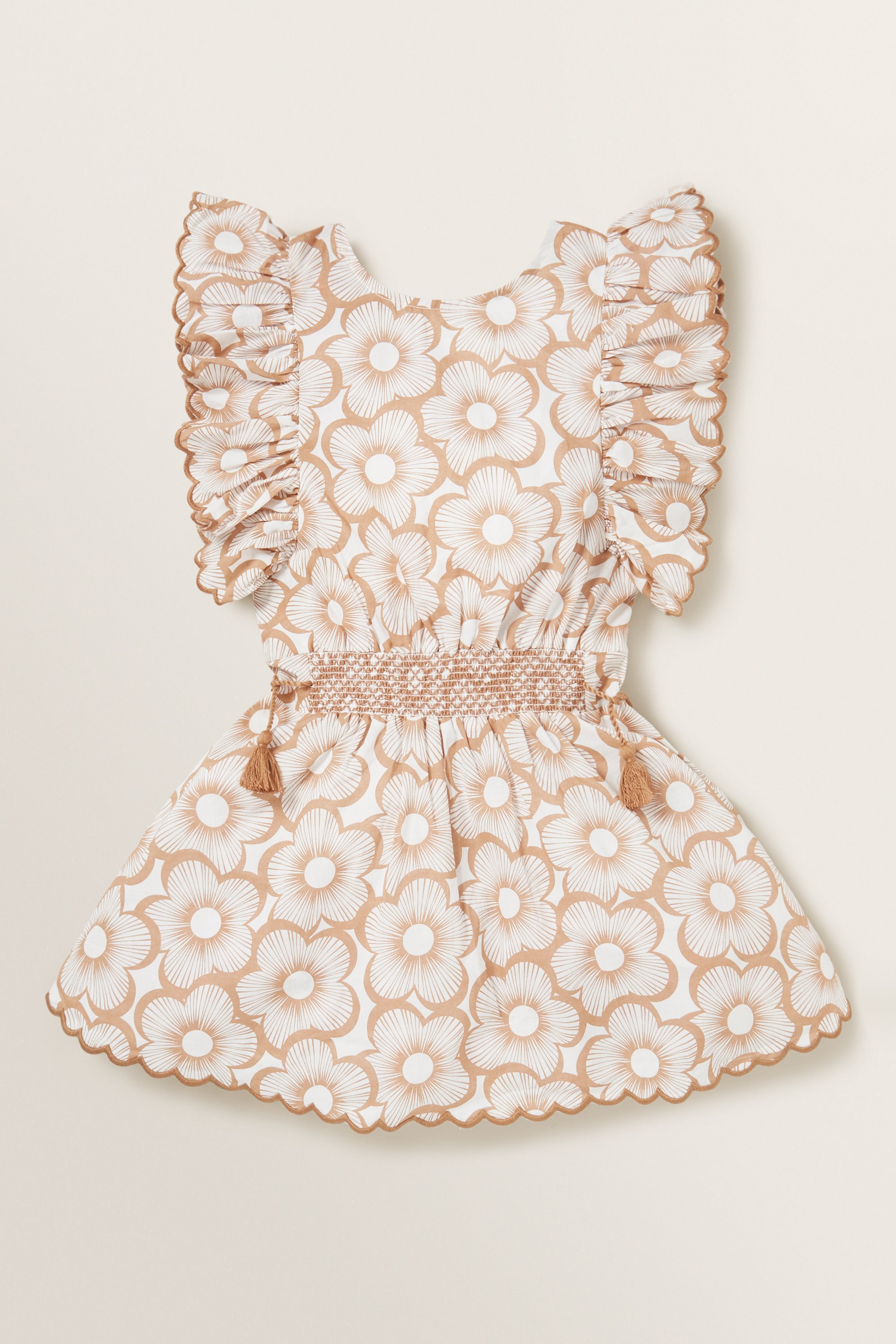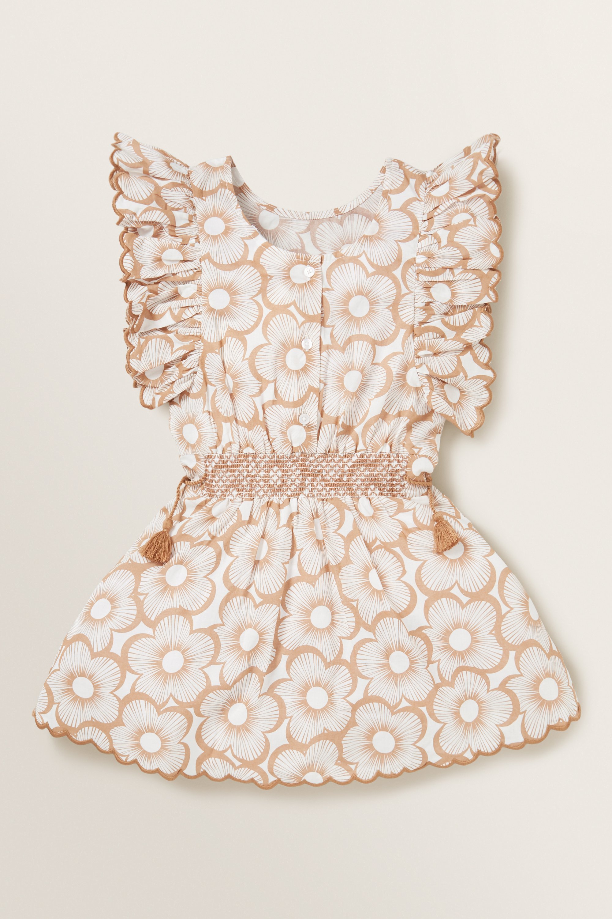 Designed in a woven cotton voile fabric, this Floral Frill Dress is detailed with a swing-style skirt.