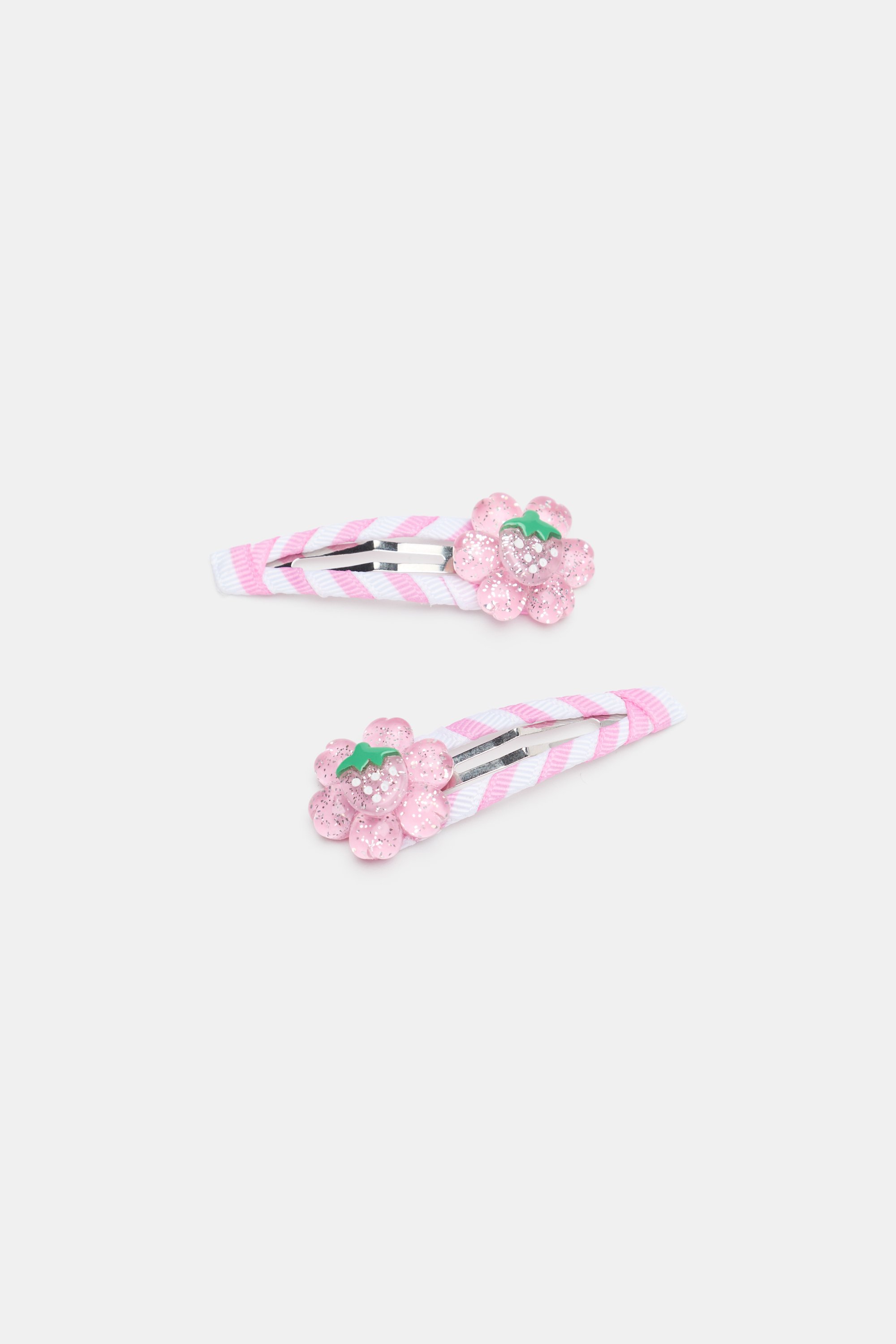 Colourful and sweet, these grosgrain-wrapped snaps feature a strawberry flower design. This product is not a toy and is not suitable for children three years and under.