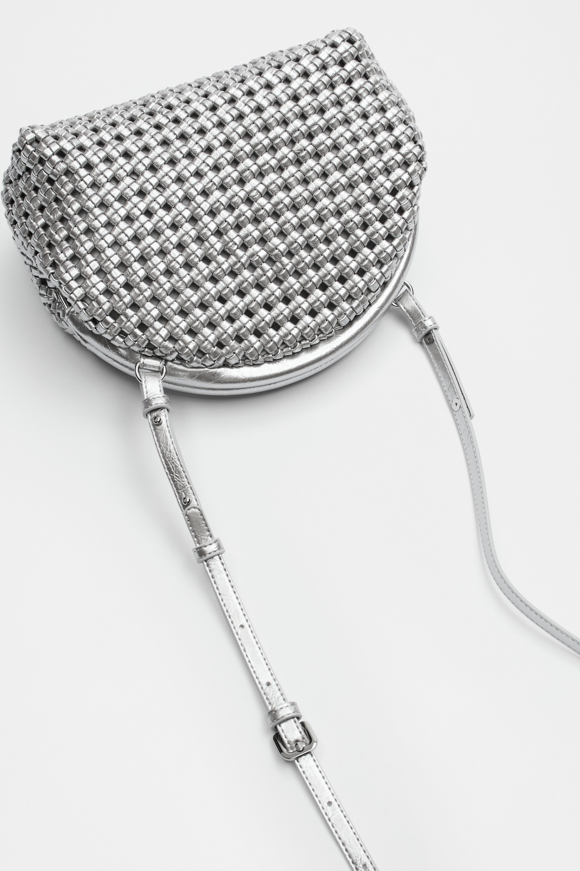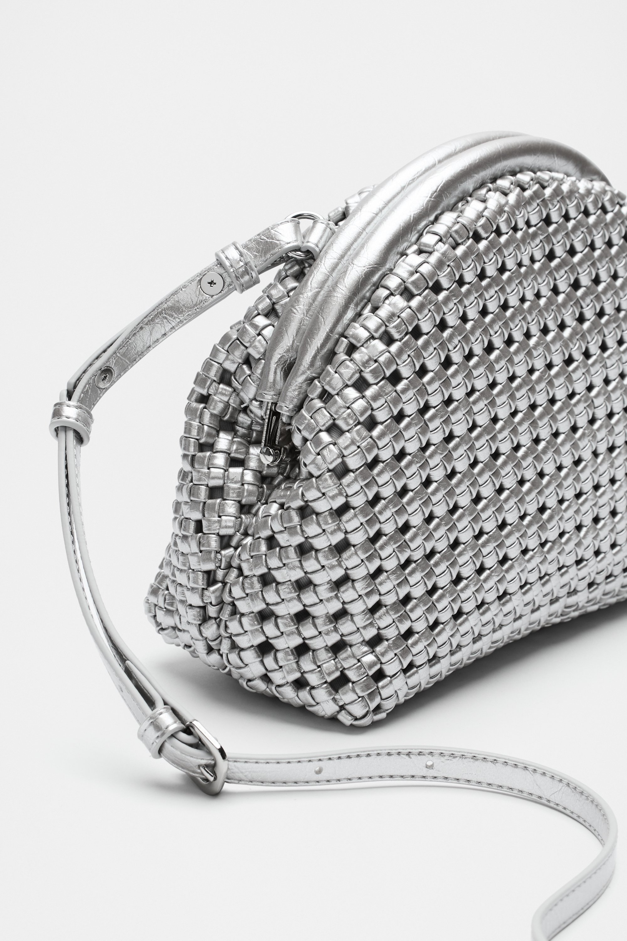 Add a textured touch of interest to your evening out with this woven pouch, complete with adjustable straps.