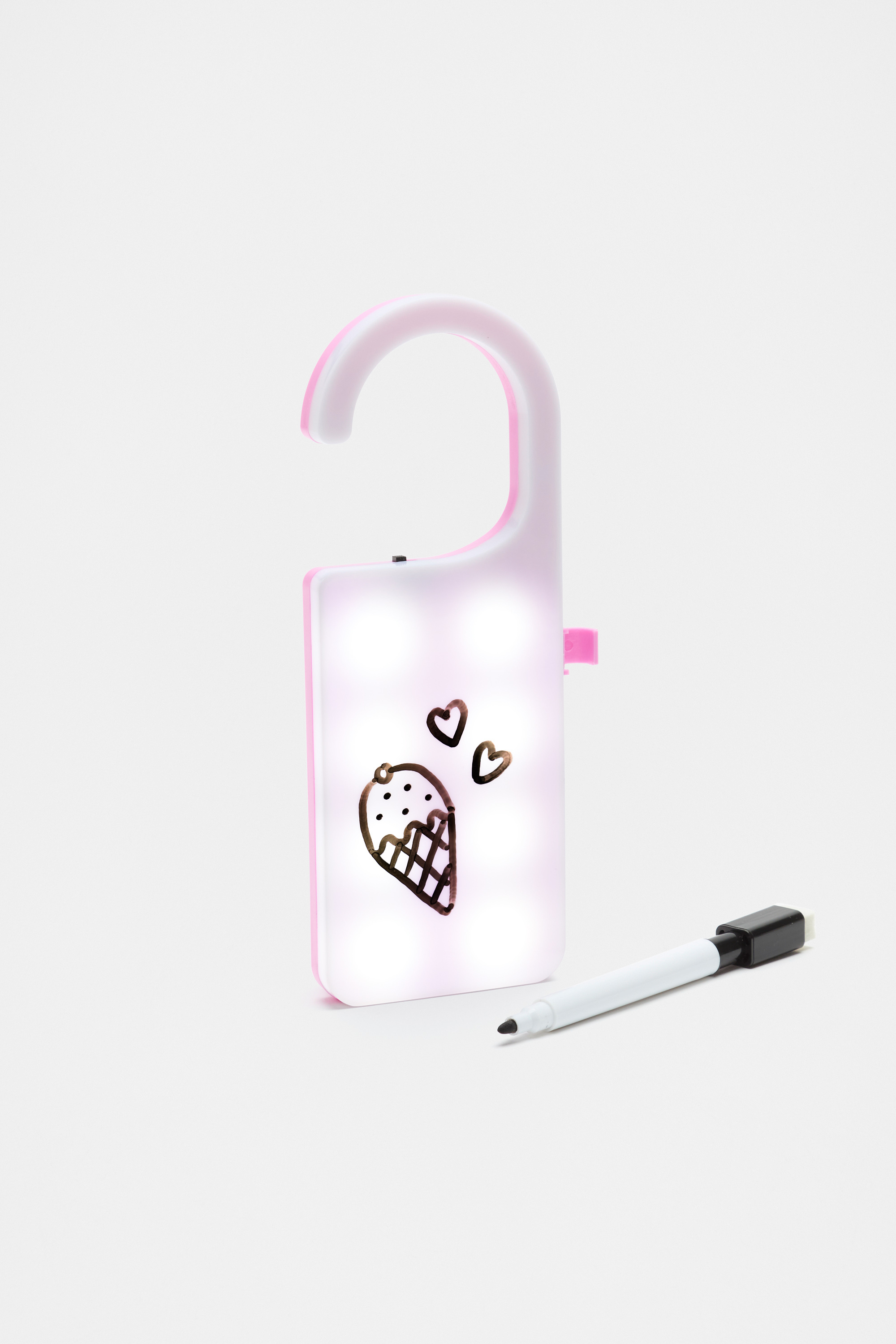 Personalise her space with his light-up LED door sign. Simply use the included marker pen to write and hang a message on the door and turn it on to illuminate the note. This product is not a toy and is not suitable for children three years and under.
