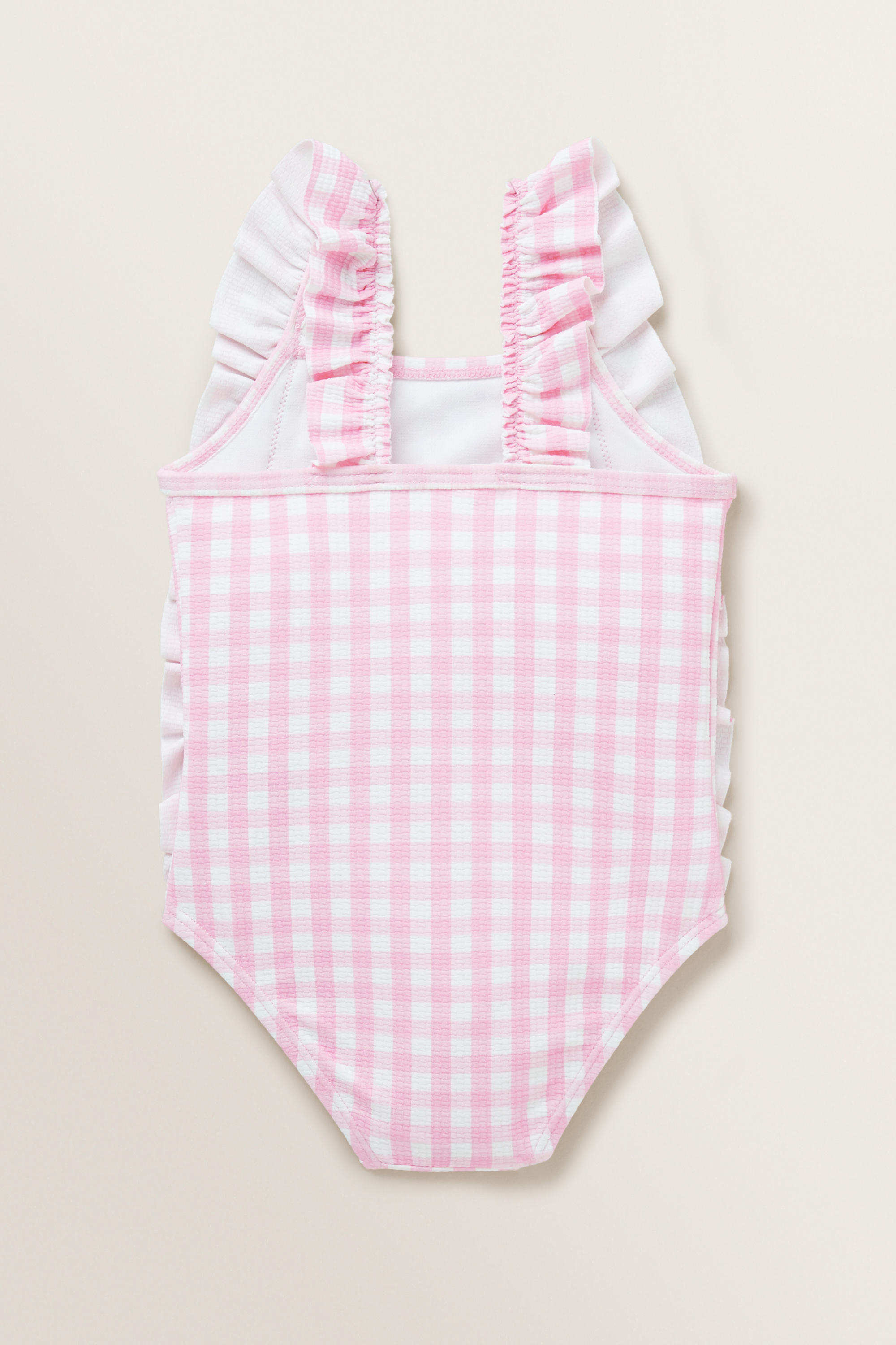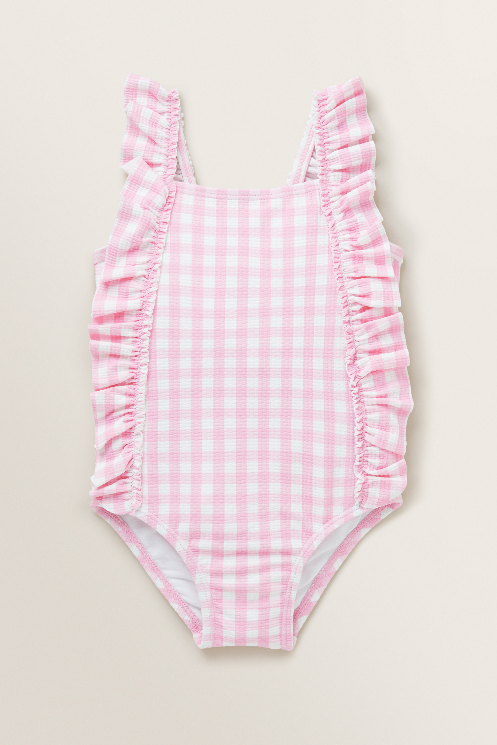 Bathe in the sunshine, wearing these Gingham Bathers. Featuring a stretch-infused textured fabric, these bathers are detailed with a square neckline and frilled side detailing.