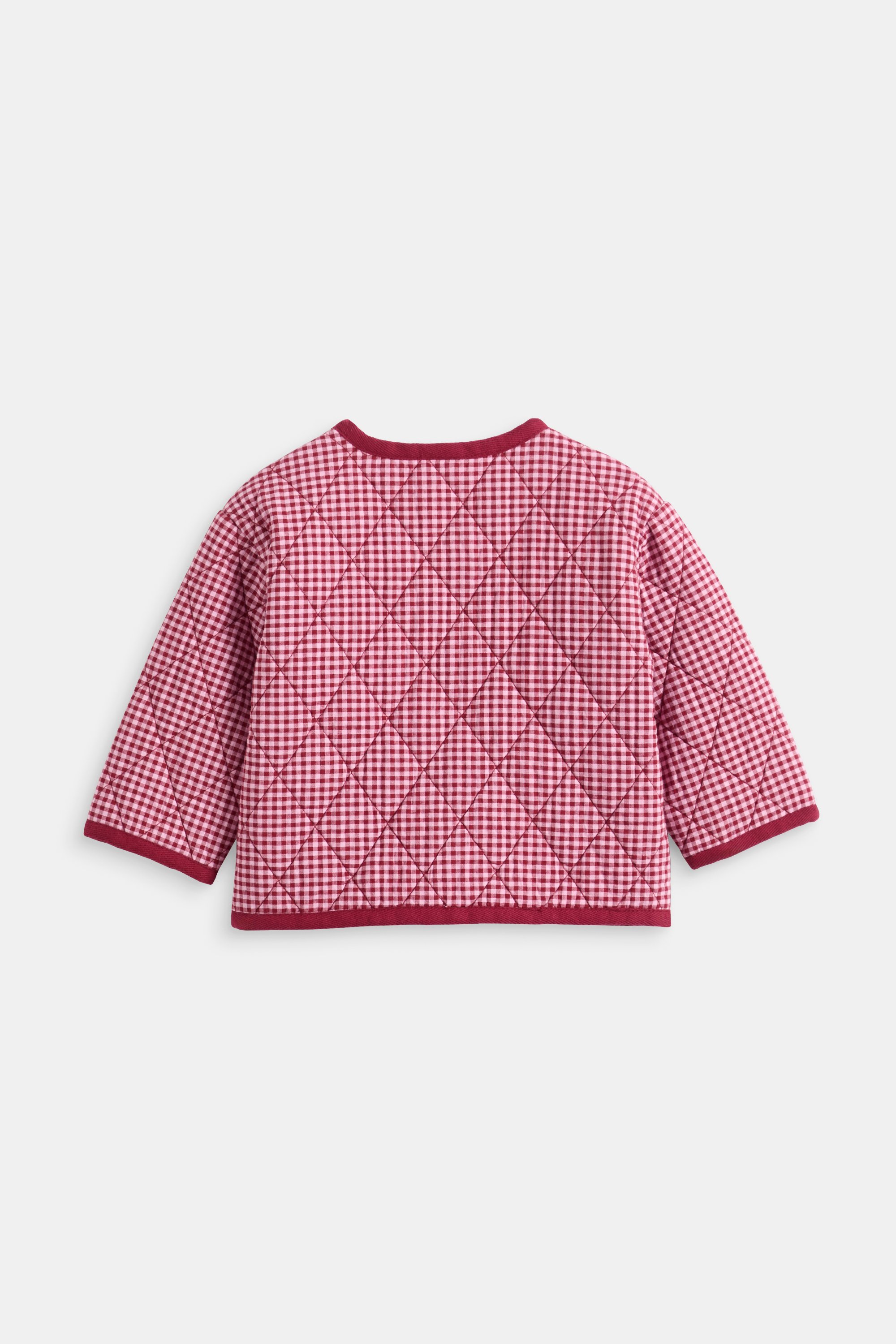 Perfect to dress her up, this adorable gingham jacket is a timeless style and is set to be a new favourite in her little wardrobe. Crafted in premium cotton, it features a round neck with a button-through front, contrast trims and an all-over gingham pattern. It's detailed with the sweetest heart-shaped pockets, heart-shaped buttons and a diamond quilt design.