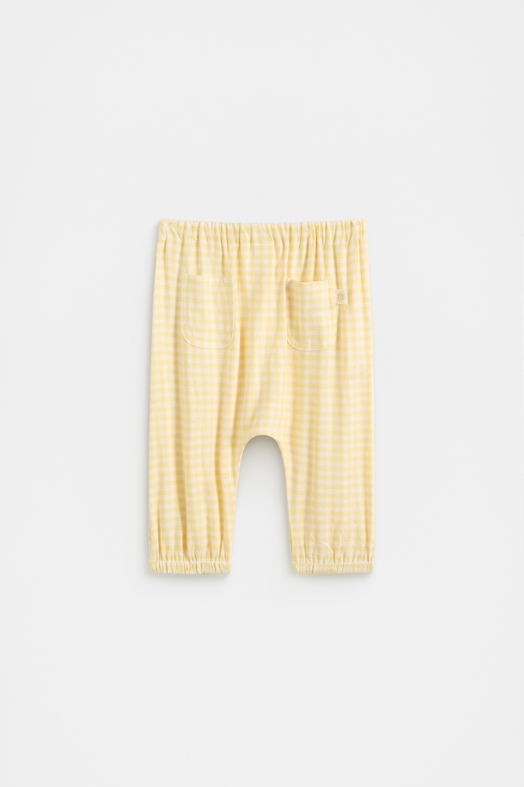 Adorably sweet, these gingham pants brighten their little wardrobe. Crafted in a lightweight blend containing linen, they feature an elasticated waistband, elasticated cuffs, and two back pockets. Pair with the matching gingham styles for the sweetest set, perfect for gifting.