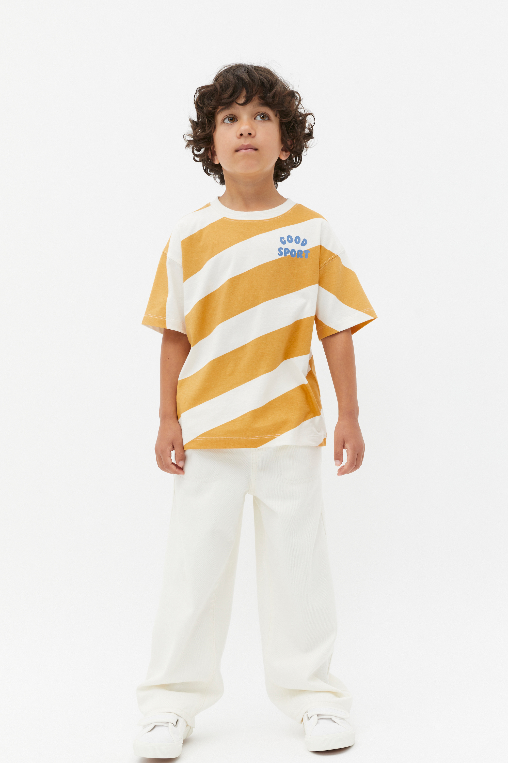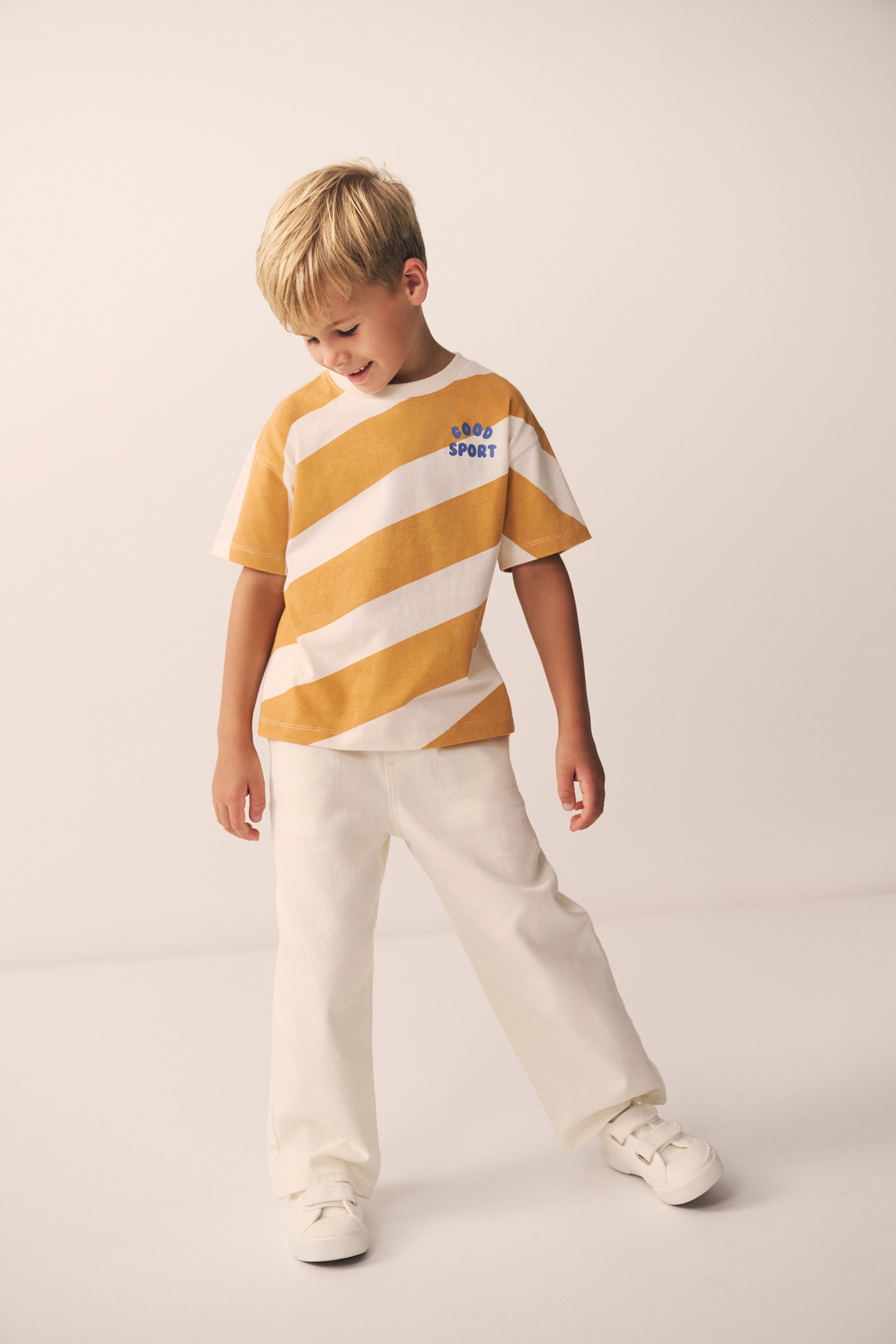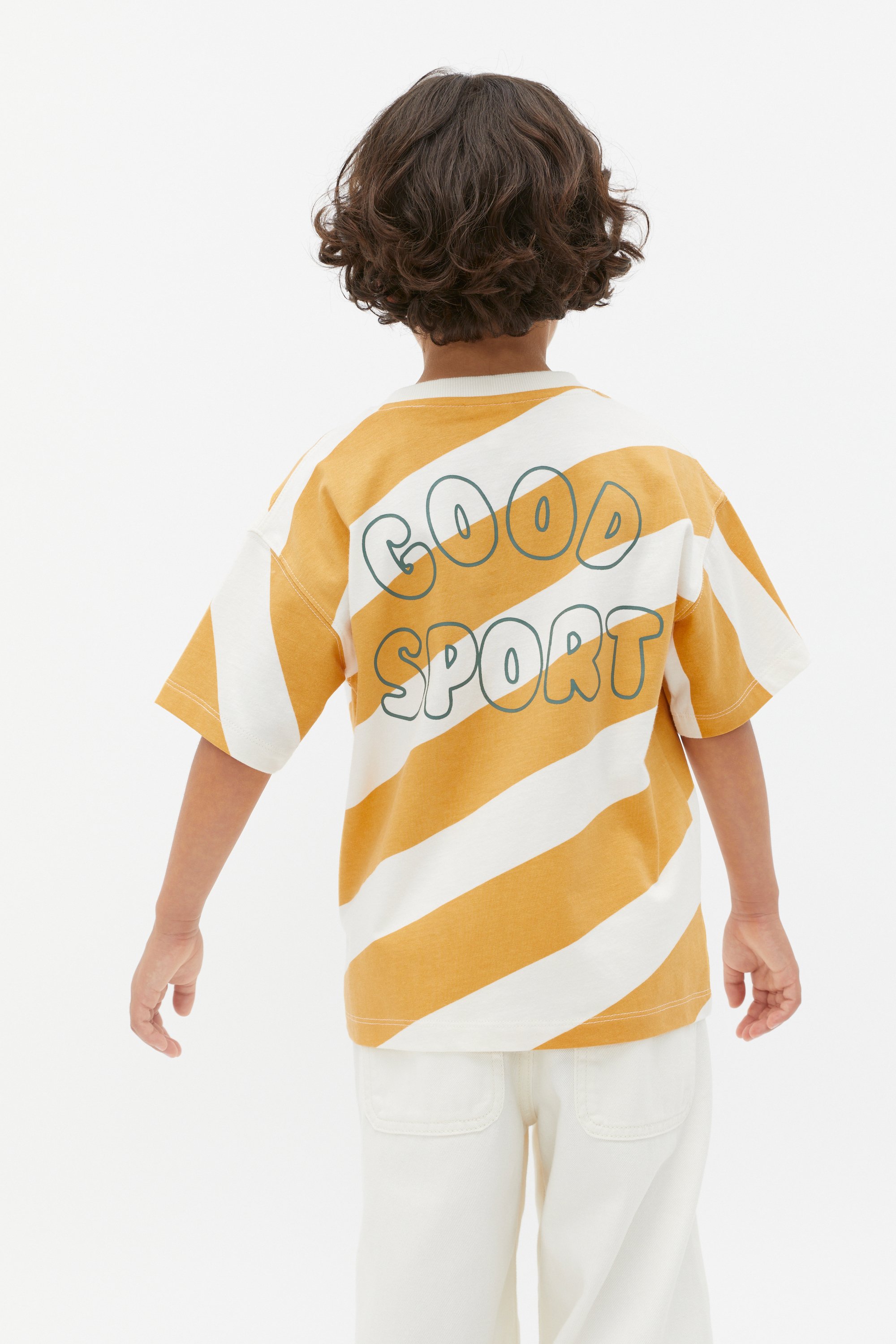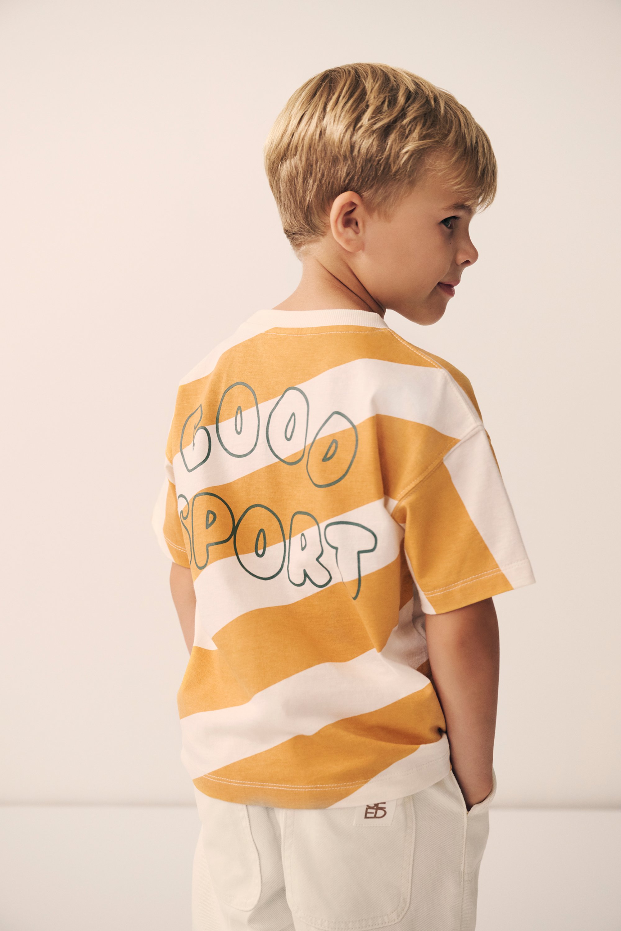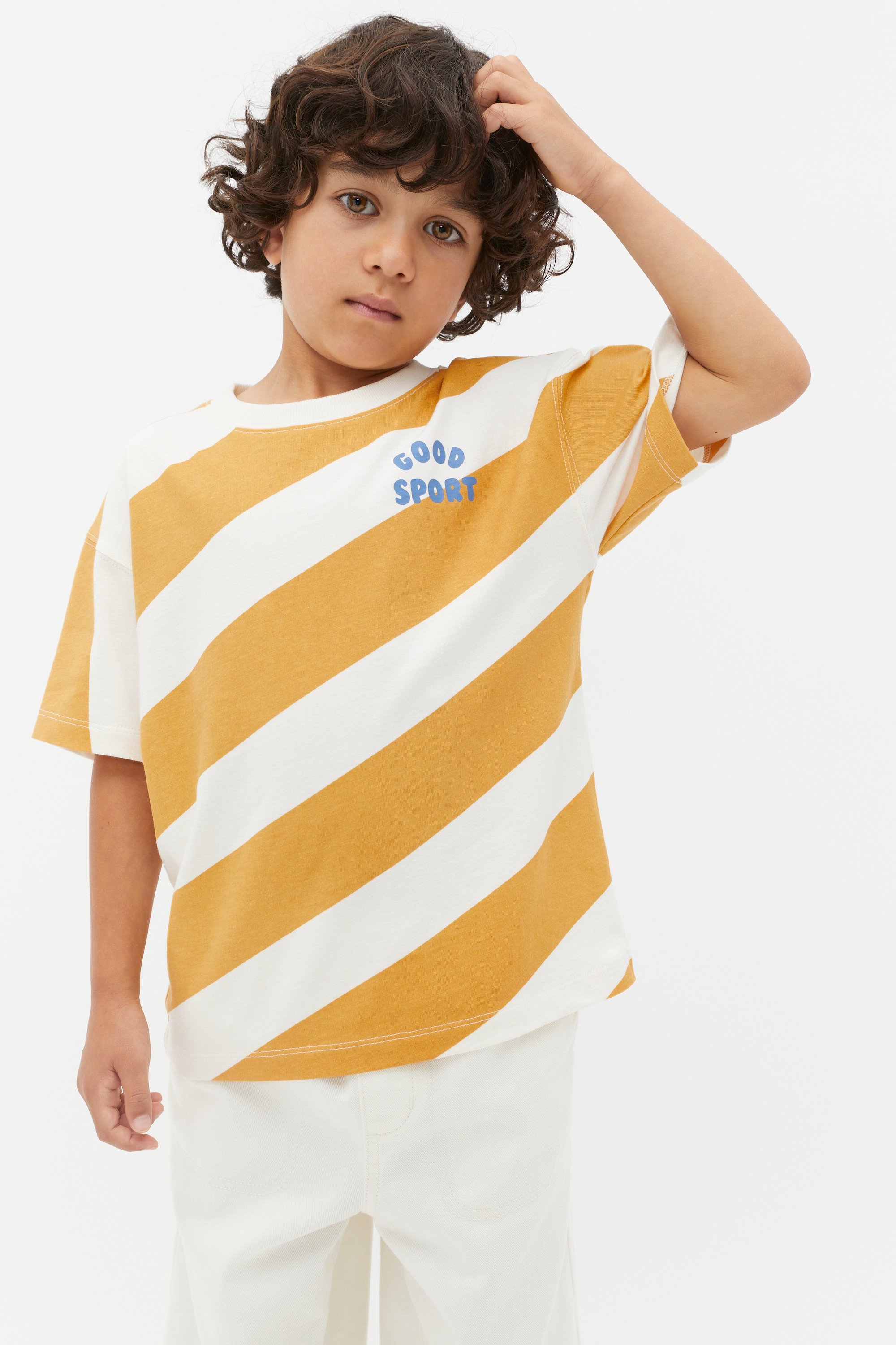 Sweet in stripes, this tee is a bright addition to his little wardrobe. Crafted in premium cotton, it features a diagonal stripe design and a printed graphic on the chest and across the back.