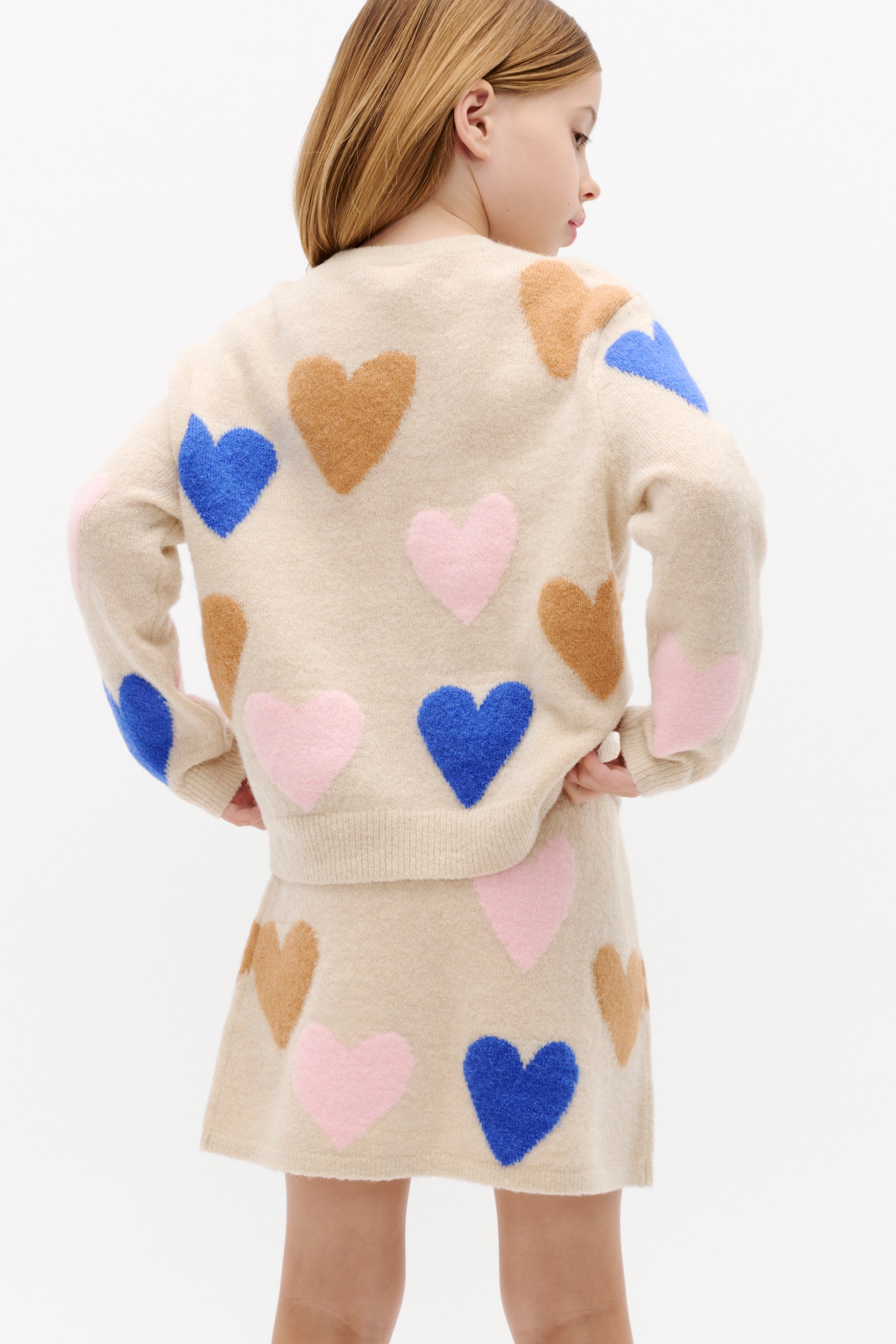 With a soft and textured finish, this knit sweater adds a touch of sweetness to her wardrobe. It features a round neck, long sleeves with ribbed trim details and a relaxed fit. For an adorable matching set, style with the coordinating heart knit skirt.