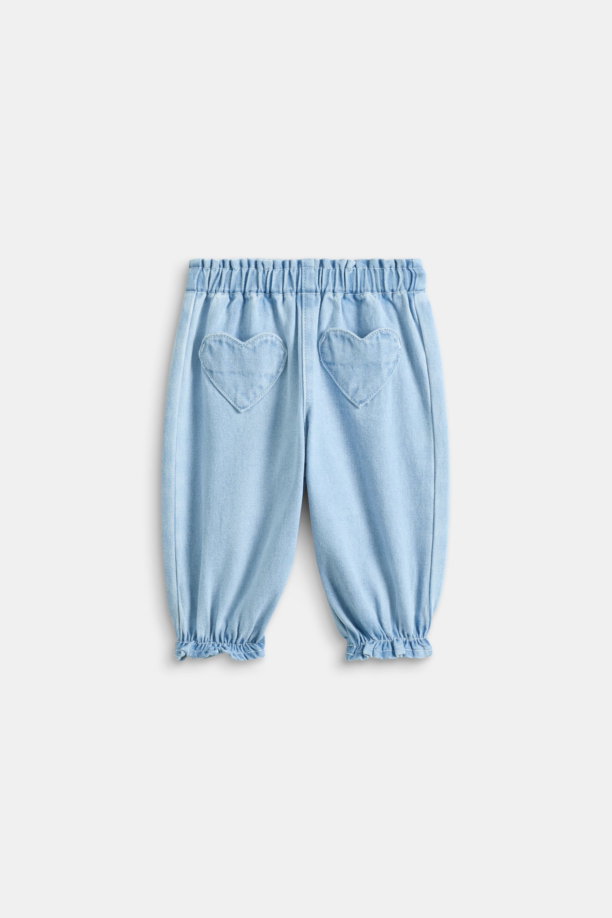 Adorably detailed with heart-shaped pockets, these little jeans are perfect for her wardrobe. Crafted in premium cotton denim, they feature an elasticated waistband and elasticated cuffs for an ultra-comfy fit.