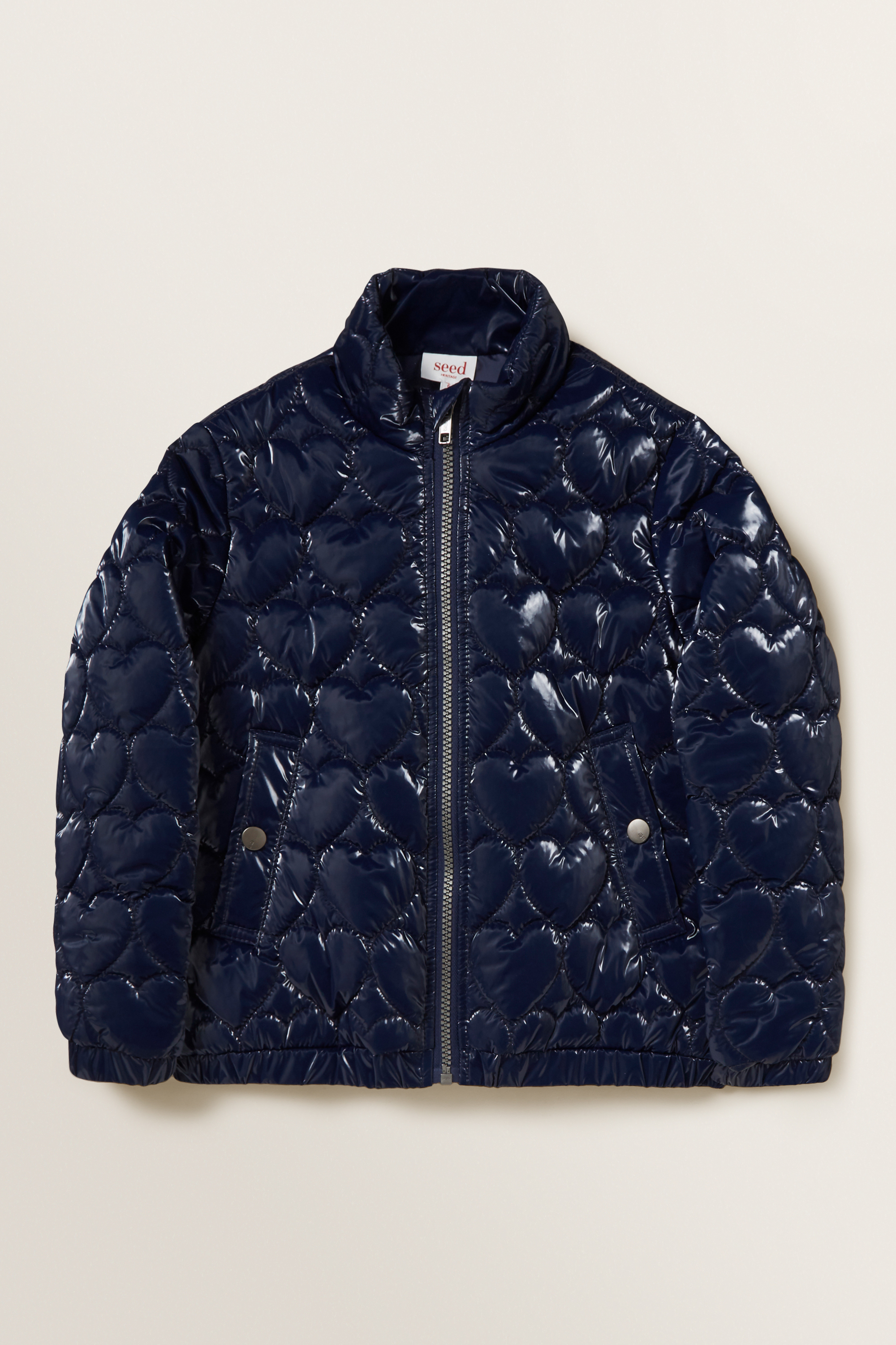 Featuring a high-shine quilted exterior, this Heart Puffa Jacket is made for rainy days.