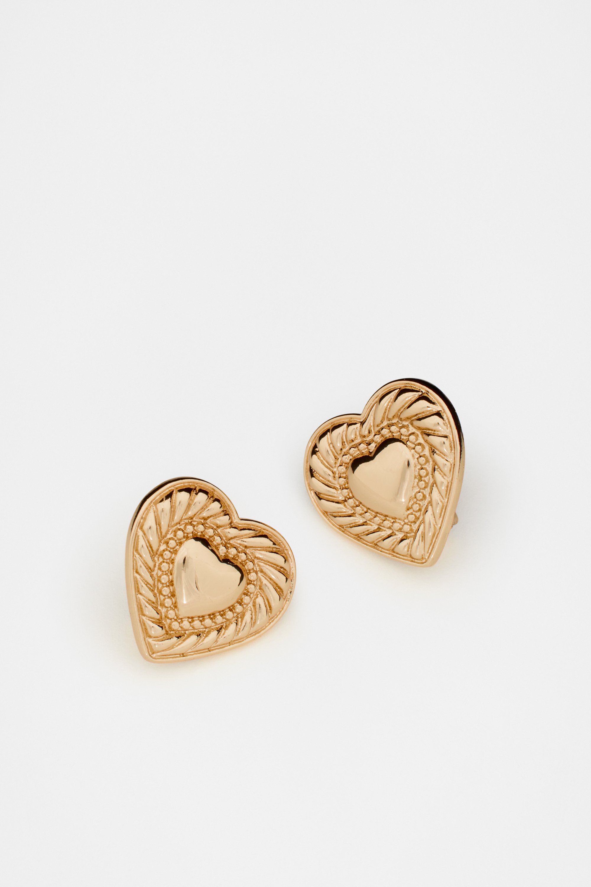 For a touch of interest and texture, these clip-on earrings are the ideal choice. They feature a statement heart design with rib details, a high-shine finish.