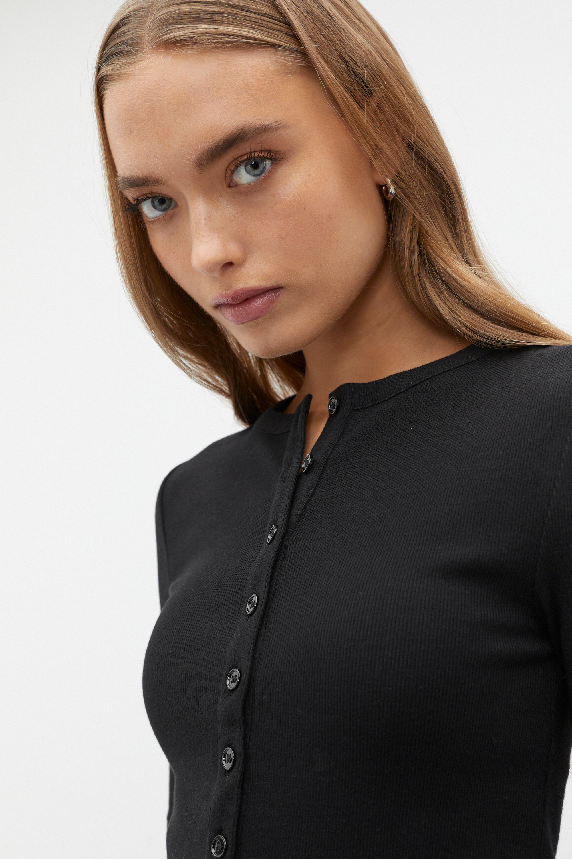 This top is a styling essential and sure to slot right in to your wardrobe. Crafted in a premium cotton blend, it features a round neck with an open button front, short sleeves and a neat fit through the body. By choosing our cotton products you're supporting our investment in Better Cotton's mission. This product was sourced via a system of mass balance and therefore may not contain Better Cotton.
