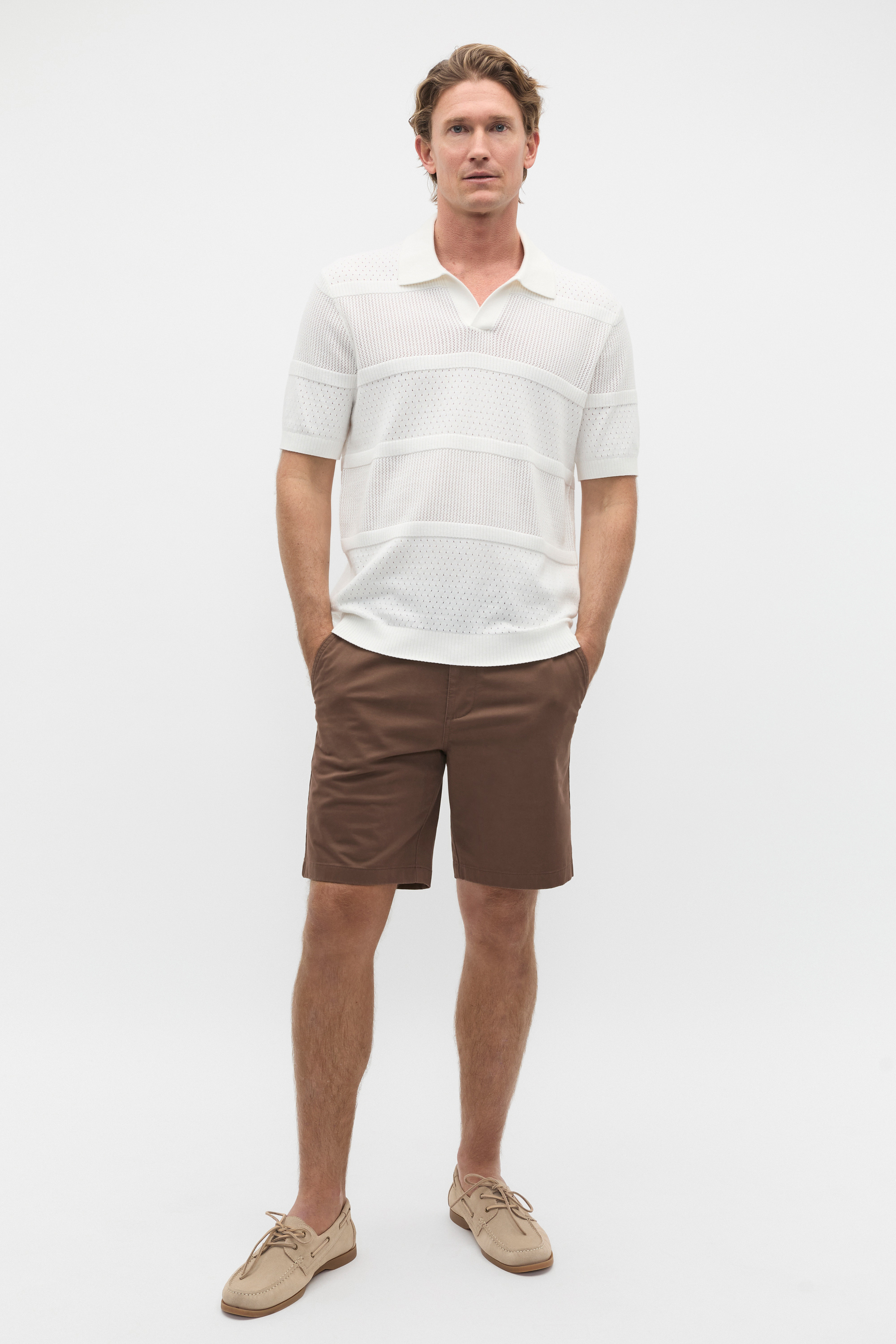 A smart take on a favourite style, these shorts are an essential pair for his warm-weather wardrobe. Crafted in cotton rich blend, they feature a fixed waistband with a zip front, belt loops and pockets. Designed to pair with our apparel for effortless tonal dressing.