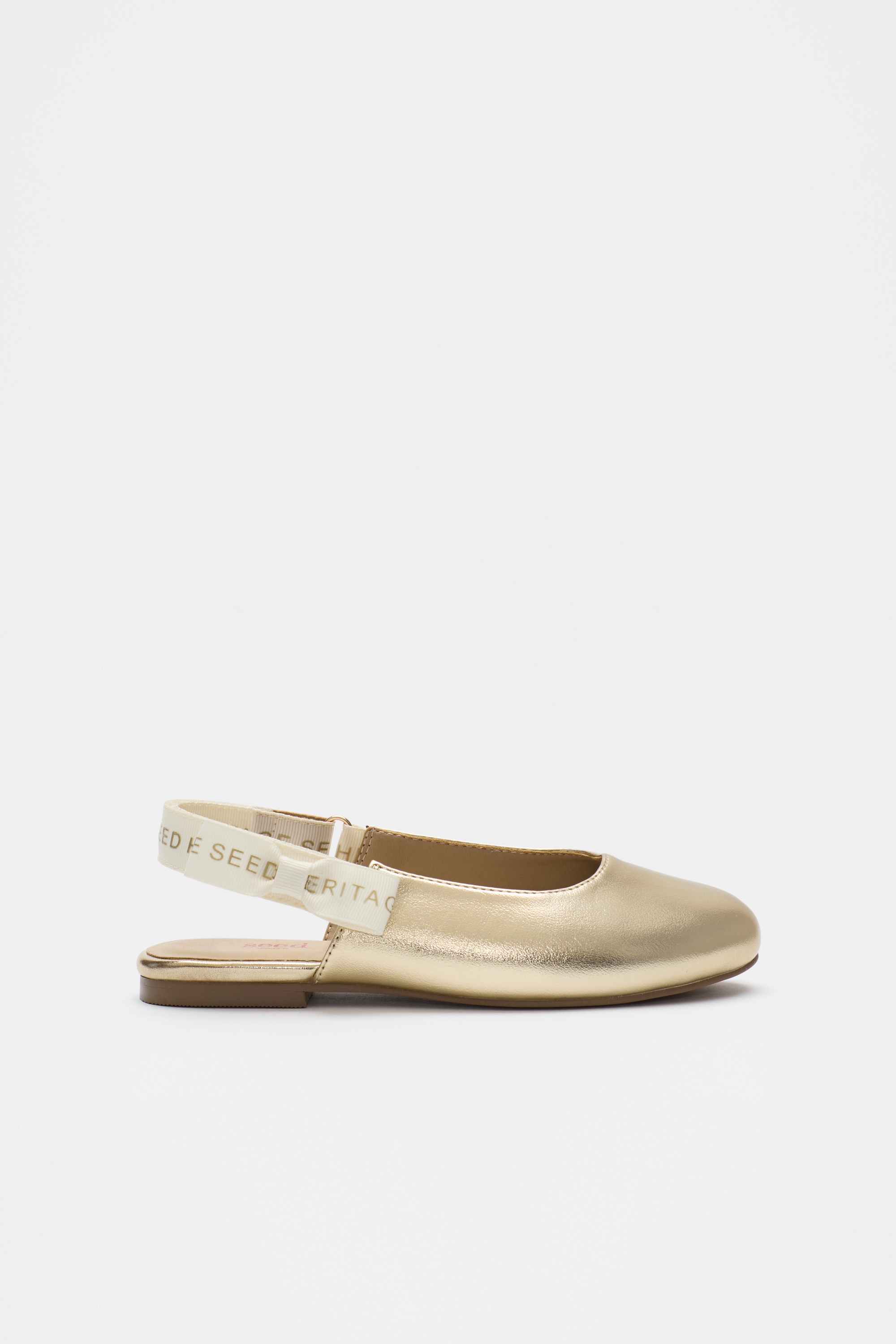 A cute option to complete her outfit, these shoes feature a ballet slipper profile with a slingback Seed logo adjustable bow strap. Style with the matching micro party bag for a cute coordinated set or for the perfect gift.