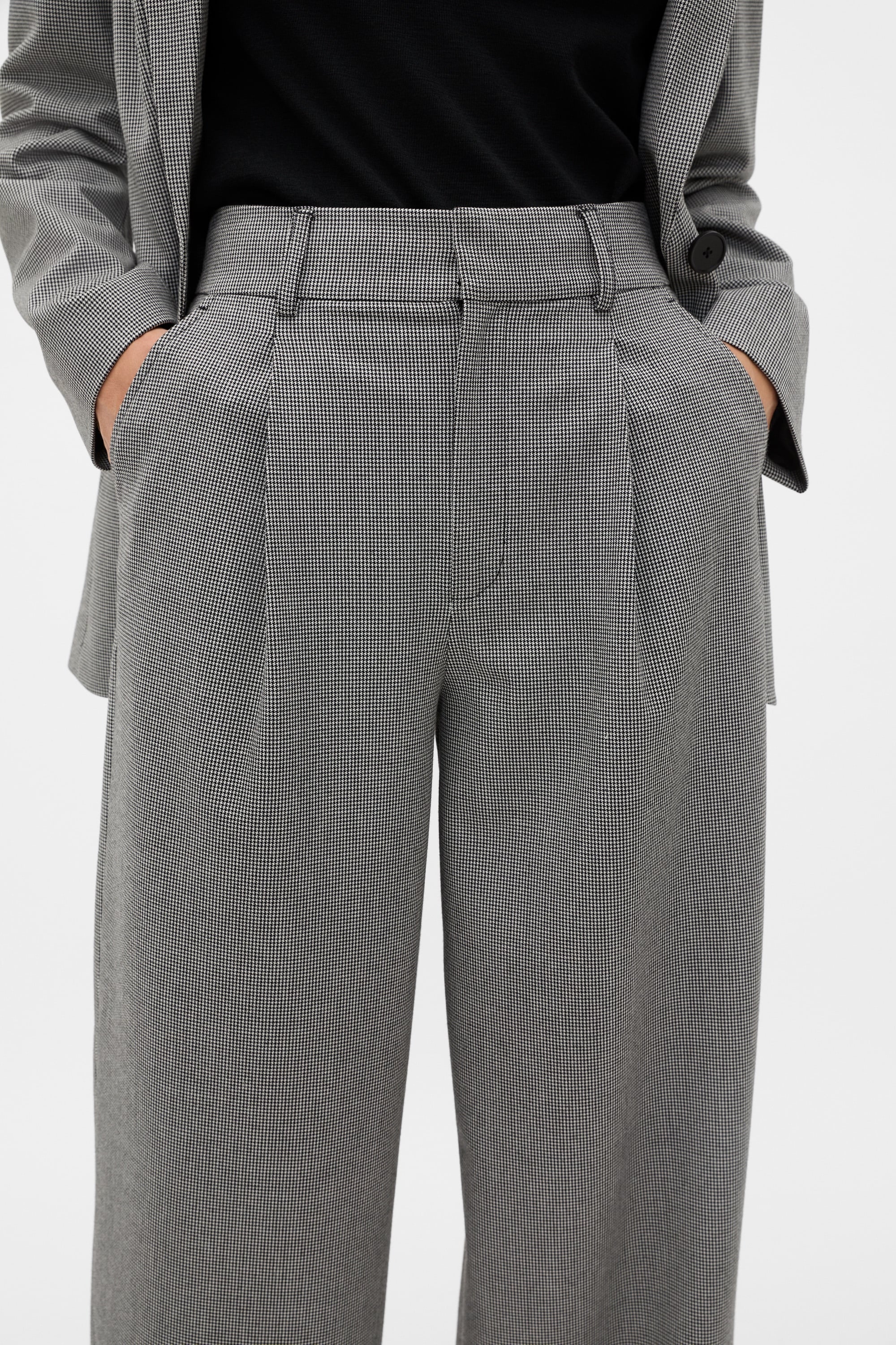 Perfect for your nine to five, these tailored pants lend a sophisticated feel to the everyday. Finished in a timeless houndstooth, they feature a fixed waistband with a zip front, belt loops, pockets and a wide leg shape. Style with the coordinating blazer for a modern suiting moment with impact.